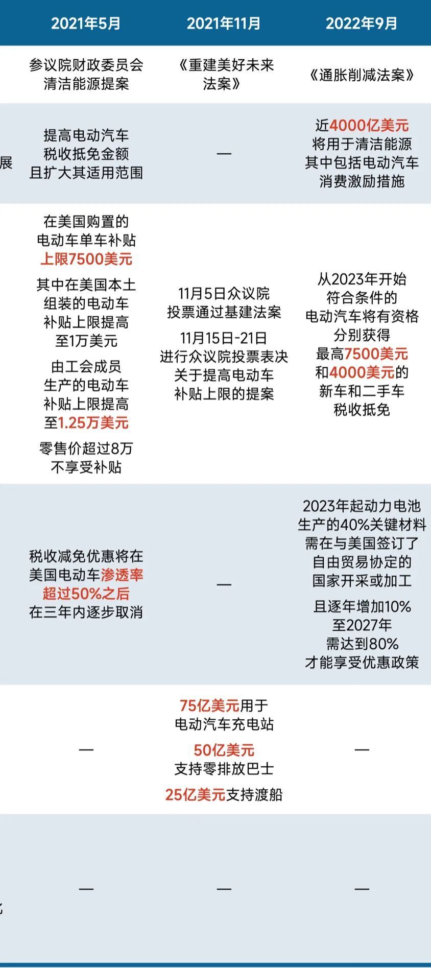 在近年全球经济低迷、衰退的背景下,贸易保护主义大行其道。典型代表政策当属美国总统拜登于2022年8月16日签署的《通胀削减法案》(Inflation Reduction Act),该法案计划投资3690亿美元用于应对能源安全和气候变化,将重点支持电动车、光伏等清洁能源产业的发展。该法案细则规定:获得税收抵免的条件,车辆必须在北美组装;关键矿物必须在与美国有自贸协定的国家或地区提取或加工,或在北美回收利用;电池组件必须来自美国或与美国有自贸协定的国家。
