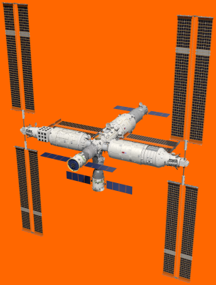 俯视角度下拍摄空间站组合体示意图