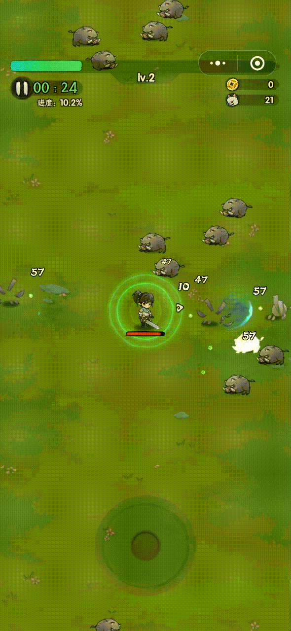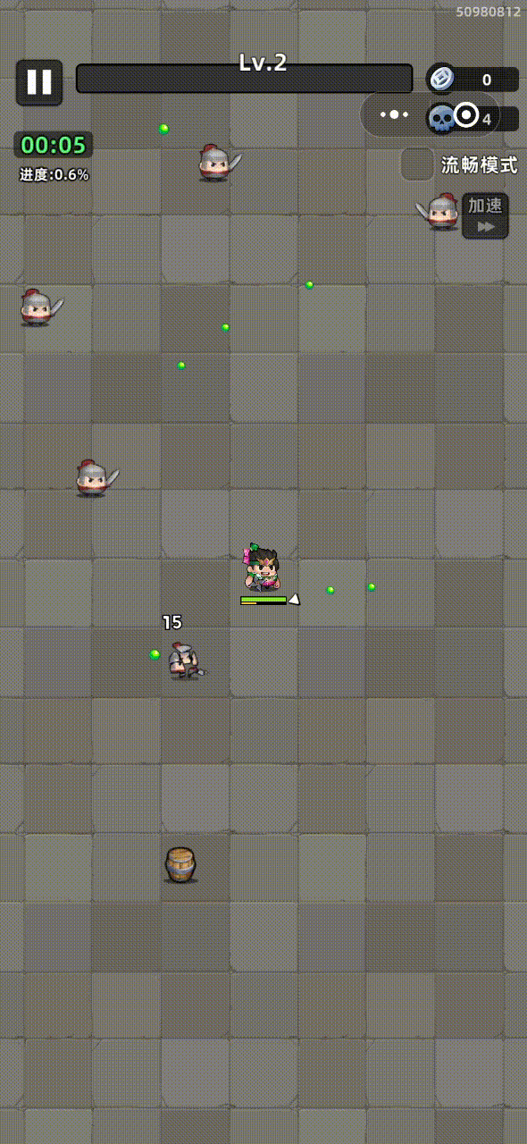 为了解决这个问题,《三国吧兄弟》采取了下列措施:为不同的怪物产出不同的经验值,调低怪物的伤害和血量,并提供简单易懂的新手提示,以保证初期游戏的割草体验。在《三国吧兄弟》各类经验数量从大到小分为橙色、蓝色、绿色,每种颜色的经验又以颗粒大小分为大、中、小三种级别,因此相比于拾取经验固定的《暴走小虾米》来说,初期关卡体验上无疑是《三国吧兄弟》做得更胜一筹。而单关卡boss则通过技能范围、释放间隔、移动速度、释放速度等条件实现降低难度。然而,两款小游戏都存在以下两个短板问题:1、场景必要性道具,如血量回复、自动拾取经验和全屏清怪等道具的刷新频率过低,从而导致容错率降低。2、游戏时间长度固定在15分钟,比其他小游戏的单局时长要高很多。