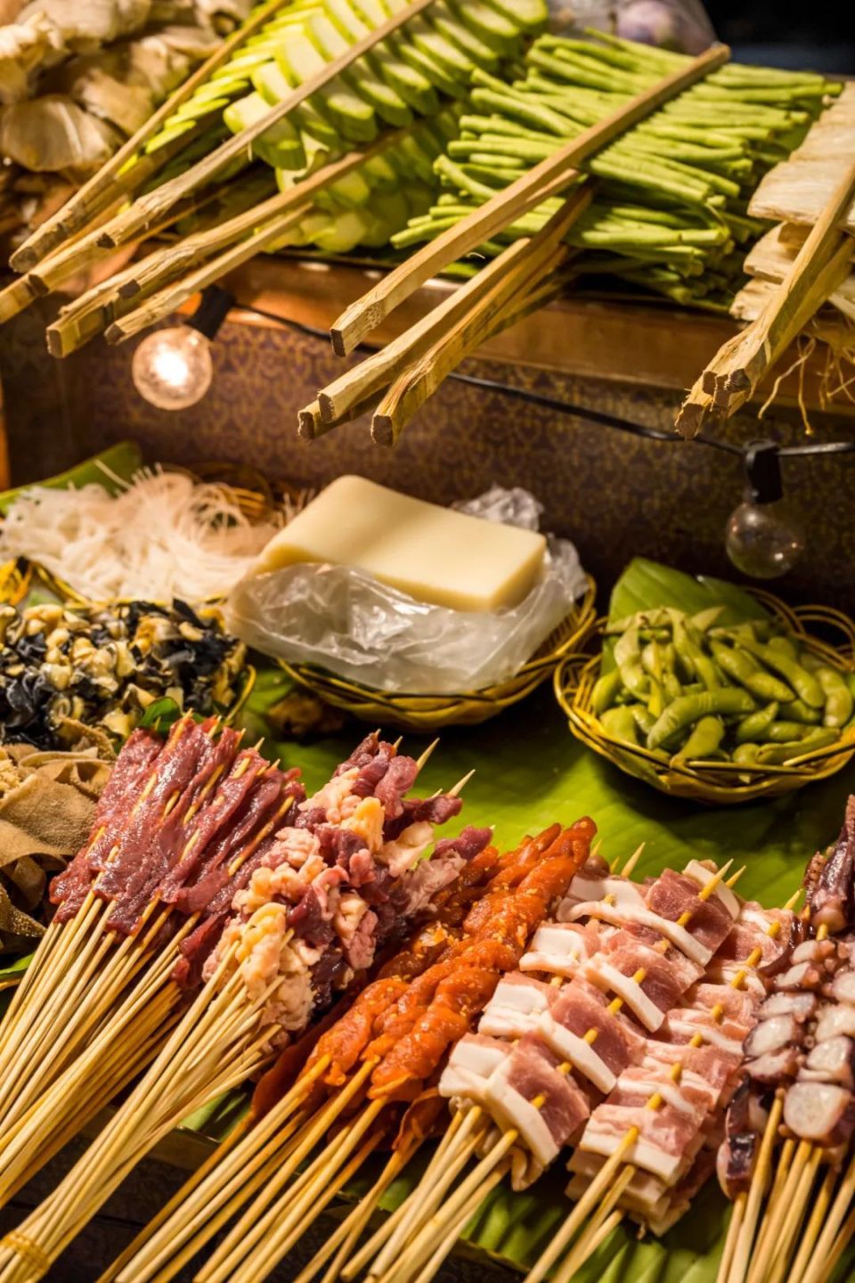 到了夜幕降临的时候,景洪就开始展示出其魅力。在地标建筑景洪大金塔之后,颇具傣族风情的告庄星光夜市,是真正意义上的星光熠熠,路边小摊灯火长明,霓虹招牌流光溢彩,被缓缓流动的澜沧江映照得仿佛南国不夜城。