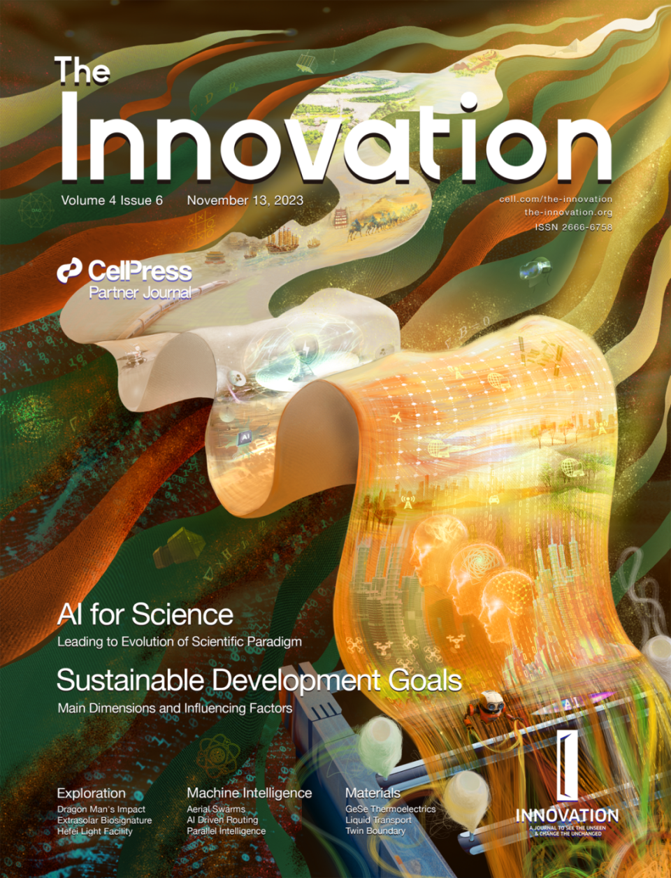 The Innovation是一本由青年科学家与Cell Press于2020年共同创办的综合性英文学术期刊:向科学界展示鼓舞人心的跨学科发现,鼓励研究人员专注于科学的本质和自由探索的初心。作者来自全球57个国家;已被139个国家作者引用;每期1/5-1/3通讯作者来自海外。目前有196位编委会成员,来自21个国家;50%编委来自海外(含39位各国院士);领域覆盖全部自然科学。The Innovation已被DOAJ,ADS,Scopus,PubMed,ESCI,INSPEC,EI,中科院分区表(1区)等收录。2022年影响因子为33.1,CiteScore为23.6。秉承“好文章,多宣传”理念,The Innovation在海内外各平台推广作者文章。