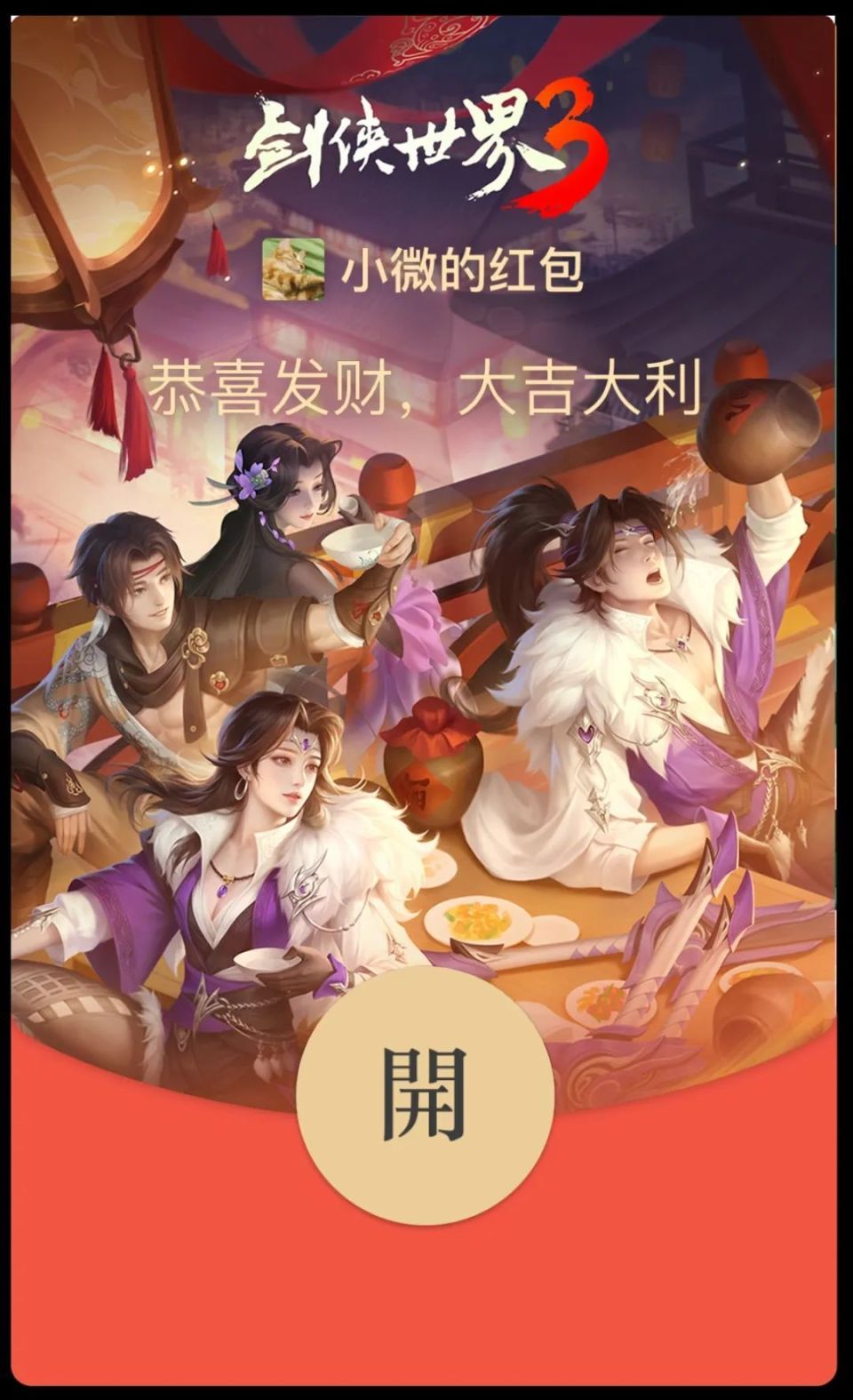 此外相当喜庆、颇具过年氛围的红包封面还有西山居《剑侠世界3》、心动《气球塔防6》《火力苏打》、三七互娱《叫我大掌柜》《凡人修仙传:人界篇》、恺英《岁时令》