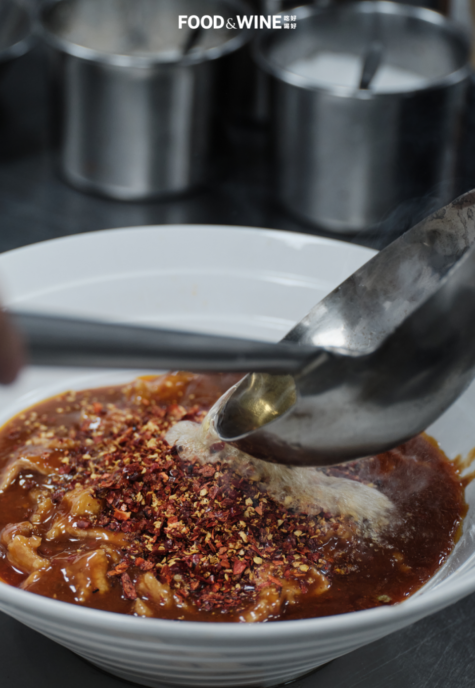 江老师给出下一道指令:把炕好的辣椒细细剁碎。水煮肉片不应该用现成的辣椒面,烹饪学院负责正本清源,虽然市场往往更现实,但至少在 C2-8,热油浇淋的辣椒面,要从干辣椒慢火炕香再细细剁碎而来。