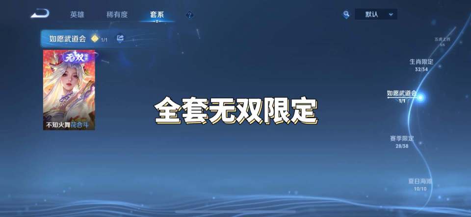一直以来snk英雄上线新皮肤都是一整套的,并没有单独的一款,目前看了一下,不知火舞的新皮肤也是安排了一个系列叫做如愿武道会,如果是单款皮肤的话,那么在套系皮肤这里应该是看不到的,所以很明显如愿,武道会系列皮肤绝对不止一款。