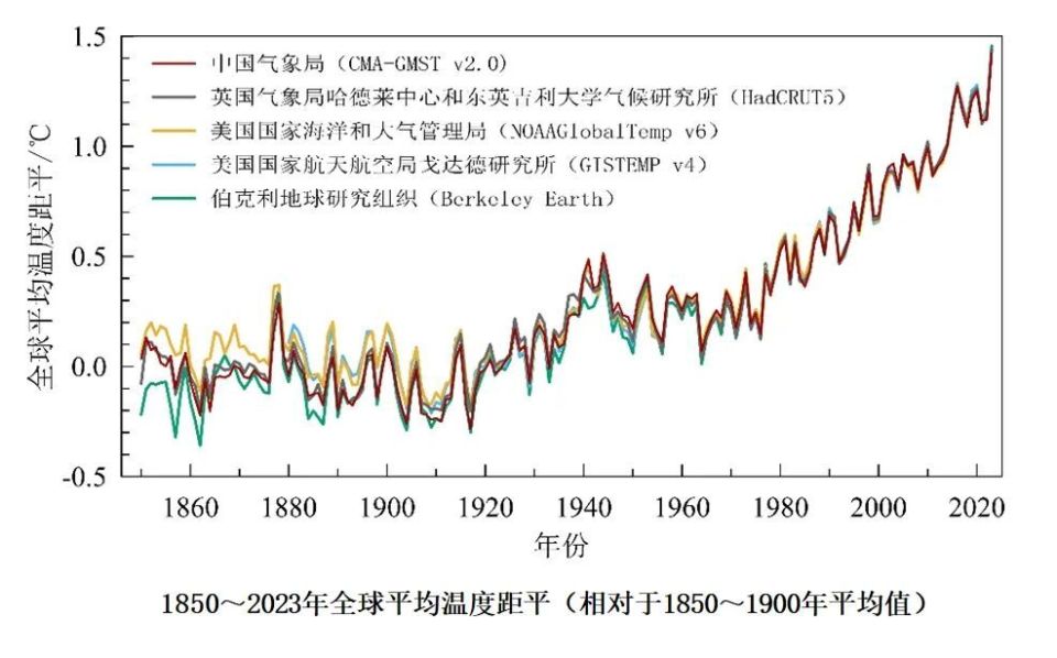 全球变暖趋势仍在持续。中国气象局全球表面温度数据集分析表明,2023年全球平均温度为1850年有气象观测记录以来的最高值,最近10年(2014至2023年)全球平均温度较工业化前水平(1850至1900年平均值)高出约1.2℃。