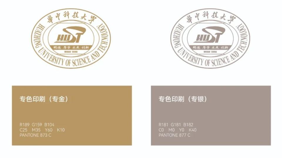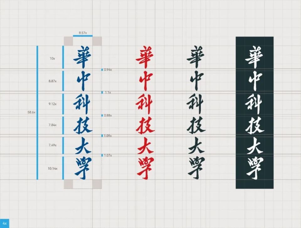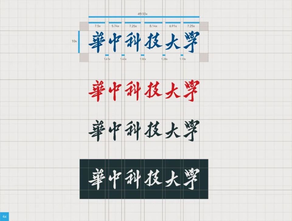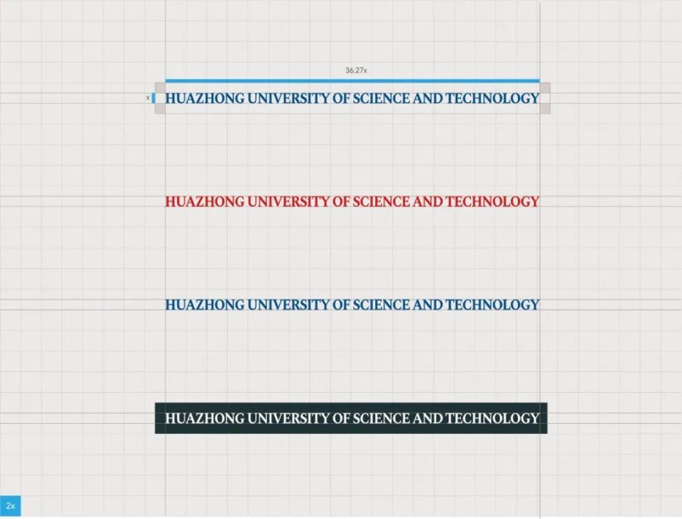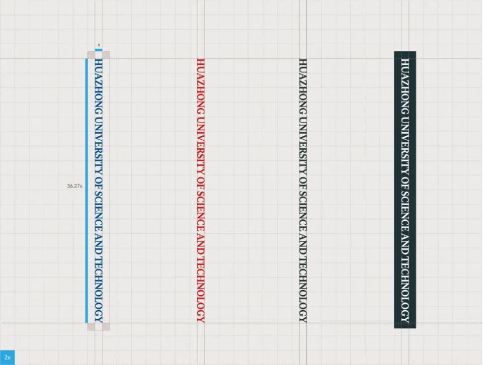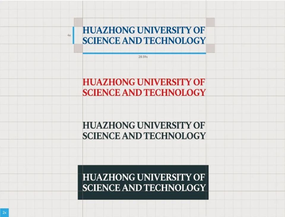 学校中文校名标准字为毛体书法的“华中科技大学”,英文校名标准字为Spectral字体的“HUAZHONG UNIVERSITY OF SCIENCE AND TECHNOLOGY”。在使用标准字时,须整体使用本规范提供的标准字文件,除本规范特别说明的情况外,不得自行拼凑使用,不可随意更改标准字的字形、字间距及相对位置。