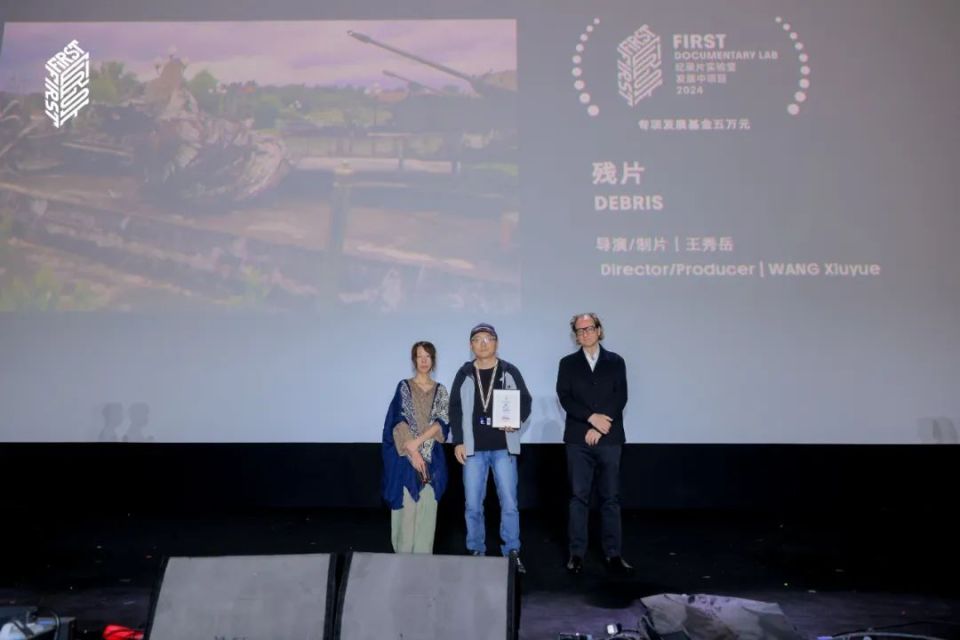 FIRST纪录片实验室评审马莉,“大师之初”单元策展人德西雷·福尔勒(Désiré Feuerle)为入选影片颁发荣誉。2024年FIRST纪录片日·荣誉之夜现场