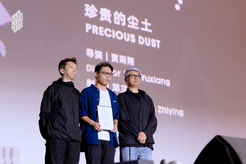 第十八届FIRST青年电影展纪录片实验室评审李博,训练营顾问、著名剪辑师陈志伟为两个项目的创作者颁发荣誉。《珍贵的尘土》导演贾雨翔向评审们致谢,“感谢大家陪伴这部影片走完抵达观众之前的最后一段旅途。”《葬礼,葬礼》导演王昶凯则表示,这部影片还有很长的路要走,FIRST是它的第一步,感谢所有人的支持。