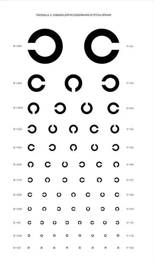 C型视标:又称兰德特环行视力表,飞行员检测时选用C字视力表,8个开口方向,相较E形表,辨认起来难度更大。