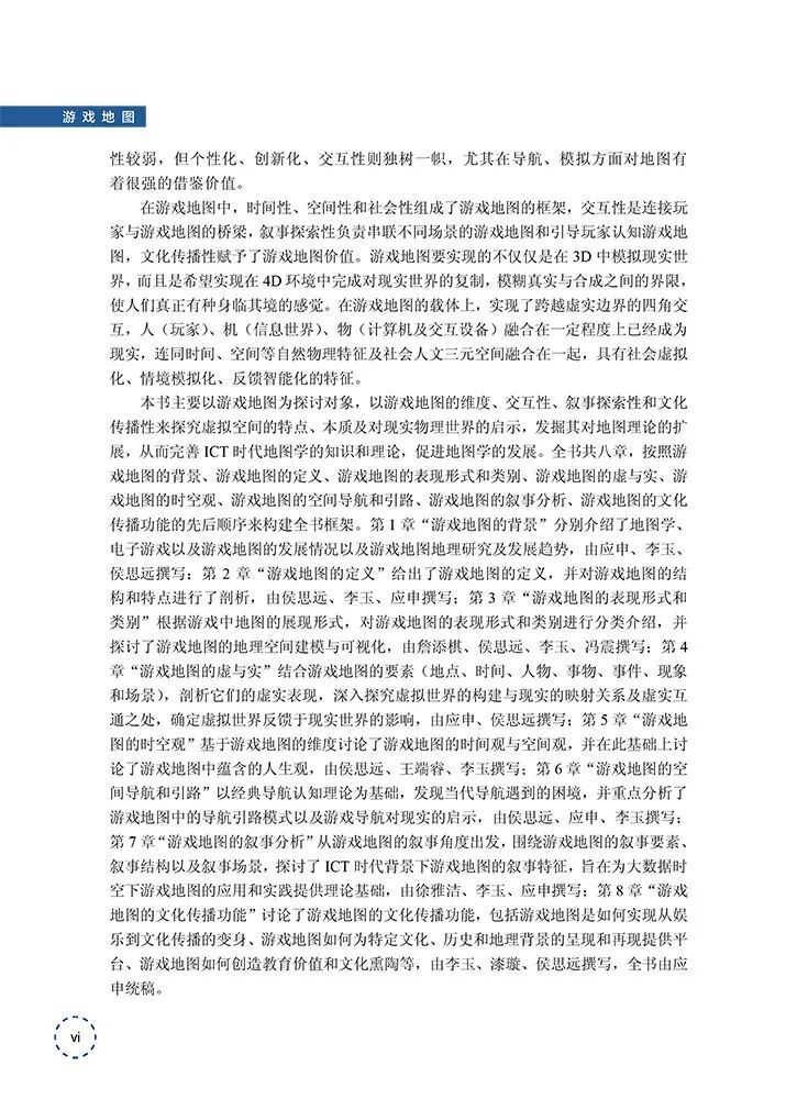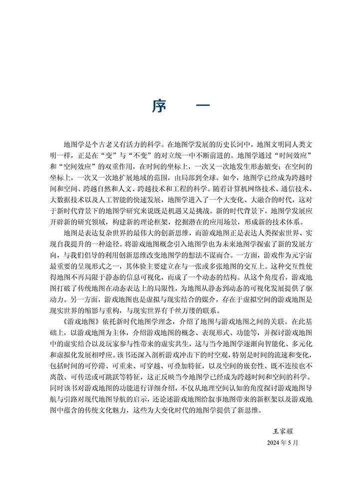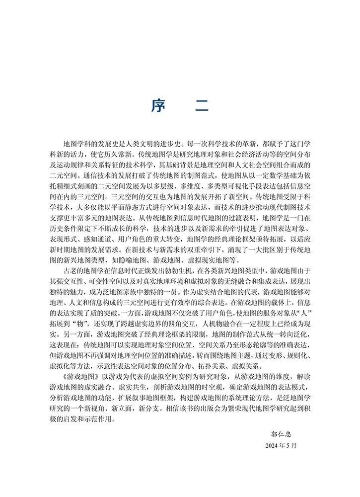 《游戏地图》(应申等著. 北京:科学出版社,2024.6)一书主要以游戏地图为探讨对象,以游戏地图的维度、交互性、叙事探索性和文化传播性来探究虚拟空间的特点、本质及对现实物理世界的启示,发掘其对地图理论的扩展,从而完善 ICT 时代地图学的知识和理论,促进地图学的发展。