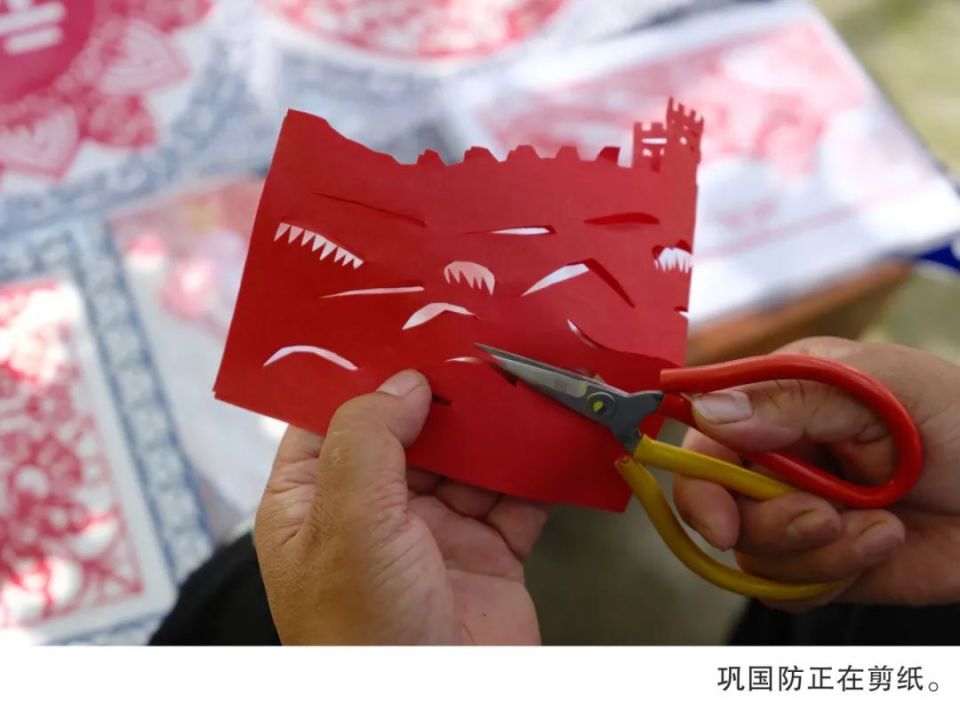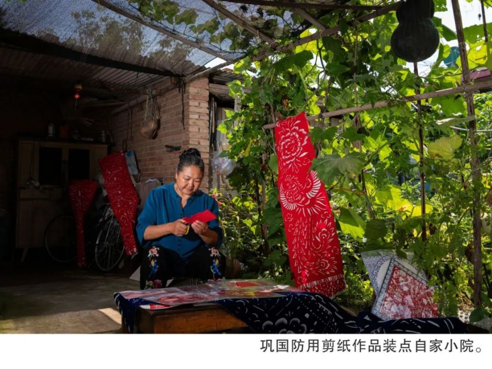 巩国防,延庆区级非遗剪纸代表性传承人。7岁跟着母亲学习剪纸,50余载潜心于长城、冬奥等题材剪纸技艺研究、传承,作品不计其数。在区里、镇里的帮助下,巩国防的巧娘工作室成立了,工作室里挂上了“北京市延庆区非物质文化遗产项目保护单位”的牌子。她用一幅幅创意作品,讲述长城脚下的故事,用剪纸记录时代的变迁。