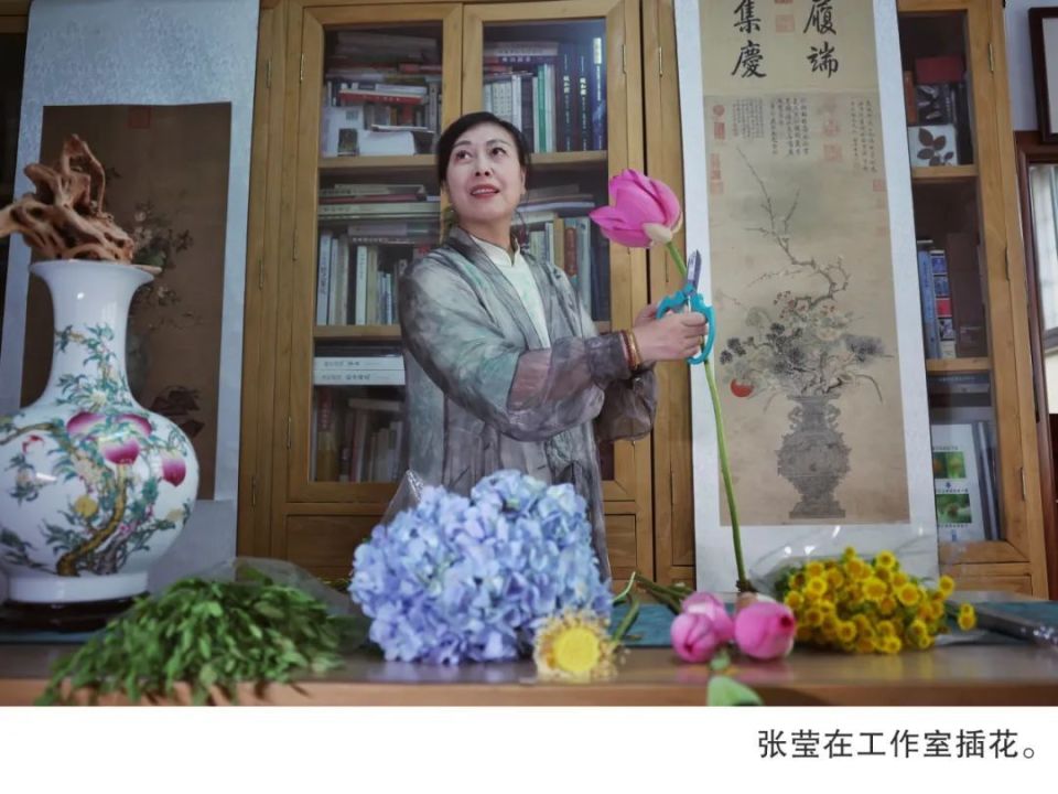 北京文化守护人张莹,颐和园高级插花花艺师,第三届“北京大工匠”、首都劳动奖章获得者,“中国宫廷插花保护传承基地”负责人。她先后参与了北京夏奥会、APEC等国事服务保障,创作宫廷插花作品800余件。作为海淀区非遗——宫廷插花代表性传承人,她创作宫廷插花二十四节气作品,自然地将季节的感受与生活的意趣反映在插花作品中,弘扬优秀古典园林艺术。