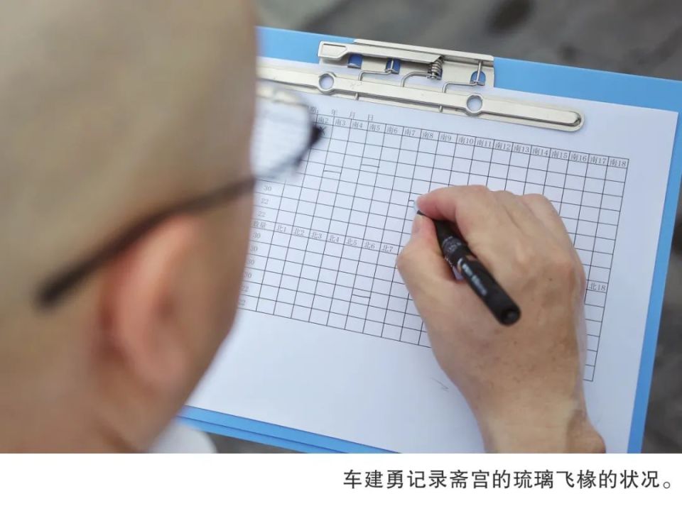 北京文化守护人车建勇,天坛公园基建科副科长。他参与过天坛文物建筑预防性保护等多个文物保护项目。2012年及2021年参与北京市房屋修缮工程计价依据的两次编制工作。自参加工作以来,车建勇参加市公园管理中心《北京天坛建筑基址规模研究》等课题,结合天坛公园古建筑的保存现状,总结古建筑保养维护工艺及造价研究。2024年1月被聘为首批北京中轴线文化遗产保护监督员。