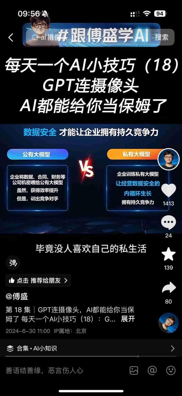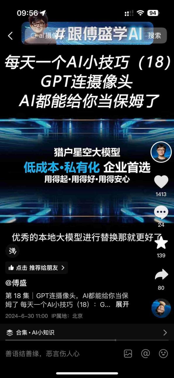 今年做抖音是因为我觉得人工智能发展太快了,各种声音都在起来,我们发表一点我们的意见,跟大家分享一下挺好,而且我们正在进入新的领域,需要更多客户认识我们,讲白了这是为了公司在做。