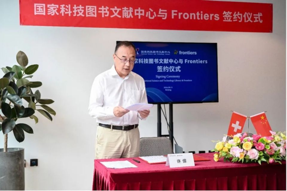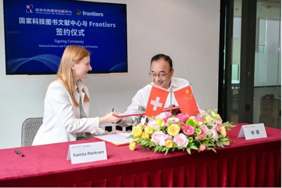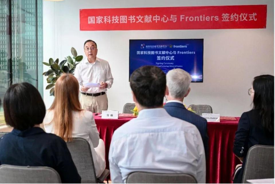 2024 年 9 月 11 日,Frontiers 与国家科技图书文献中心(National Science & Technology Library,NSTL)在北京举行机构合作签约仪式。