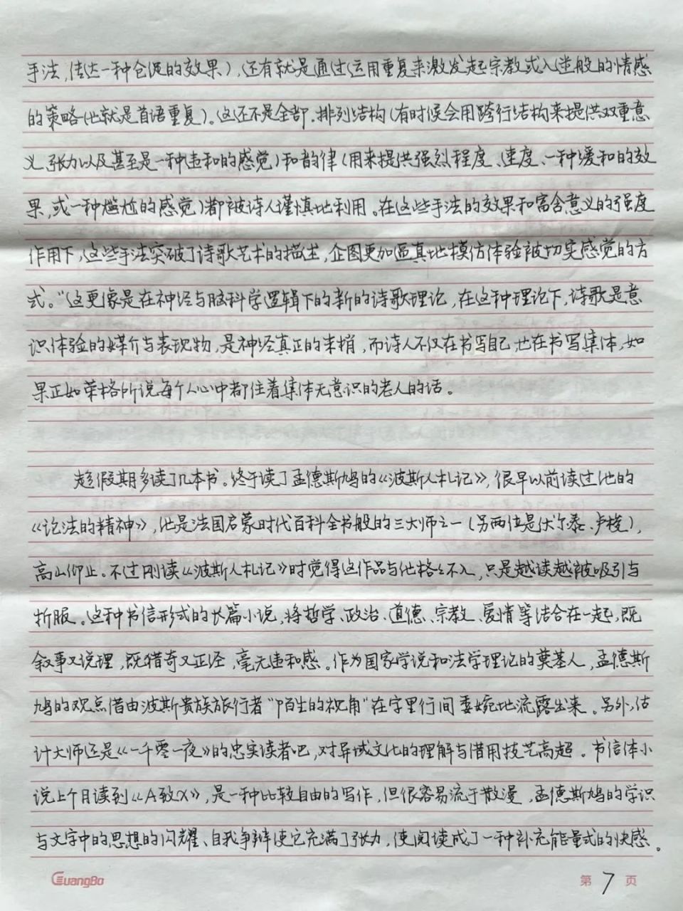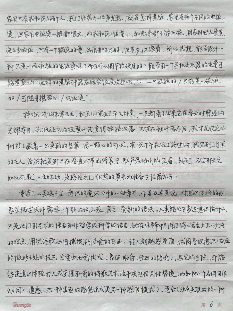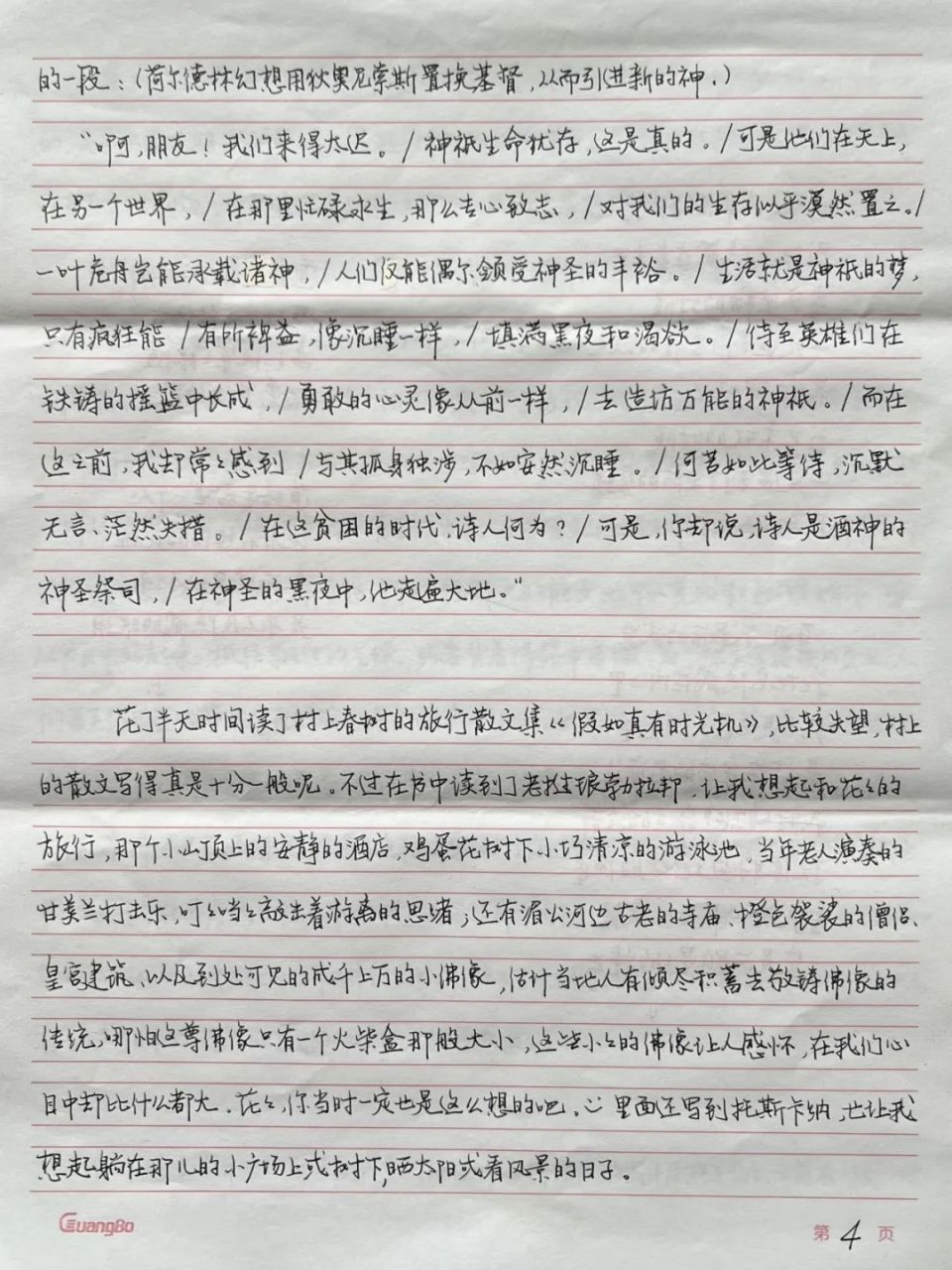 除了一些文件、剩下的书外,还有就是读书笔记和一百三十多页我写给花花的诗歌原稿了。尽管诗已经抄在信里寄给你们了,但我还是把原稿细心保存着,准备回去后作为礼物送给花花。以后我会时不时抽出几页,读给花花听。·-·有时看文字和听读的感受会非常不同呢。