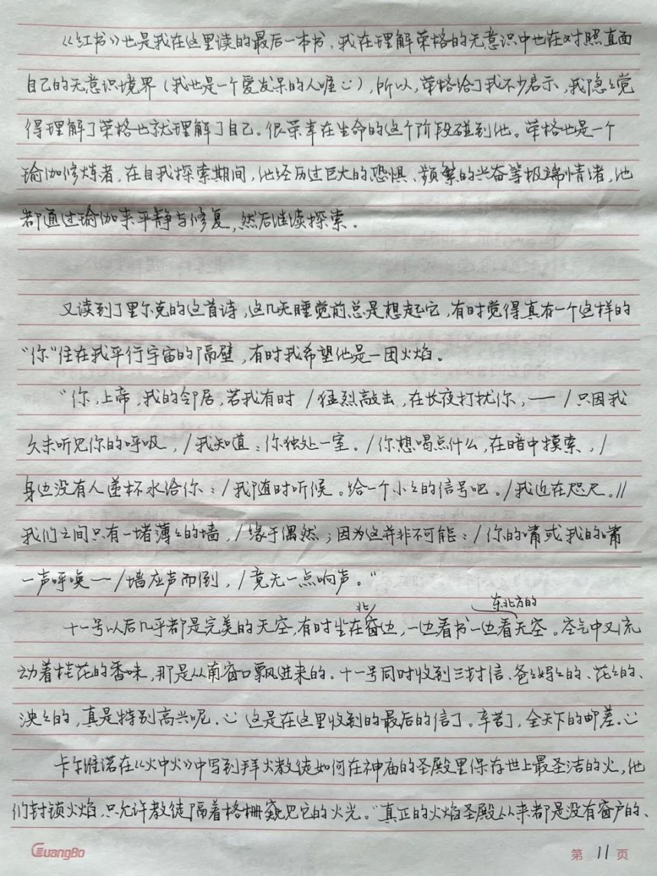 《红书》也是我在这里读的最后一本书。我在理解荣格的无意识中也在对照直面自己的无意识境界(我也是一个爱发呆的人哦·-·),所以,荣格给了我不少启示,我隐隐觉得理解了荣格也就理解了自己。