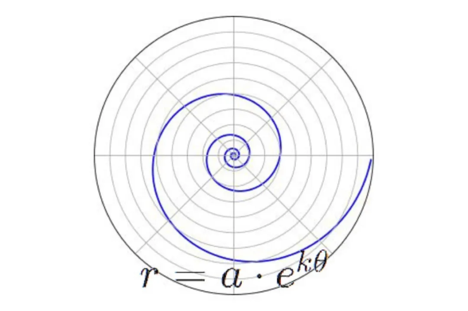 具体以鹦鹉螺的外壳切面是一个等角螺线为例。在极坐标系下,等角螺线的方程是 ,其对应的微分方程是 。也就是说,螺线的半径随着角度的增大而增大,且增长率是与半径成正比例的。事实上,正如大自然中的很多生物一样,鹦鹉螺的体积越大,新增体积也就越大,所以需要按照等角螺线设计的外壳来容下它们的躯体。