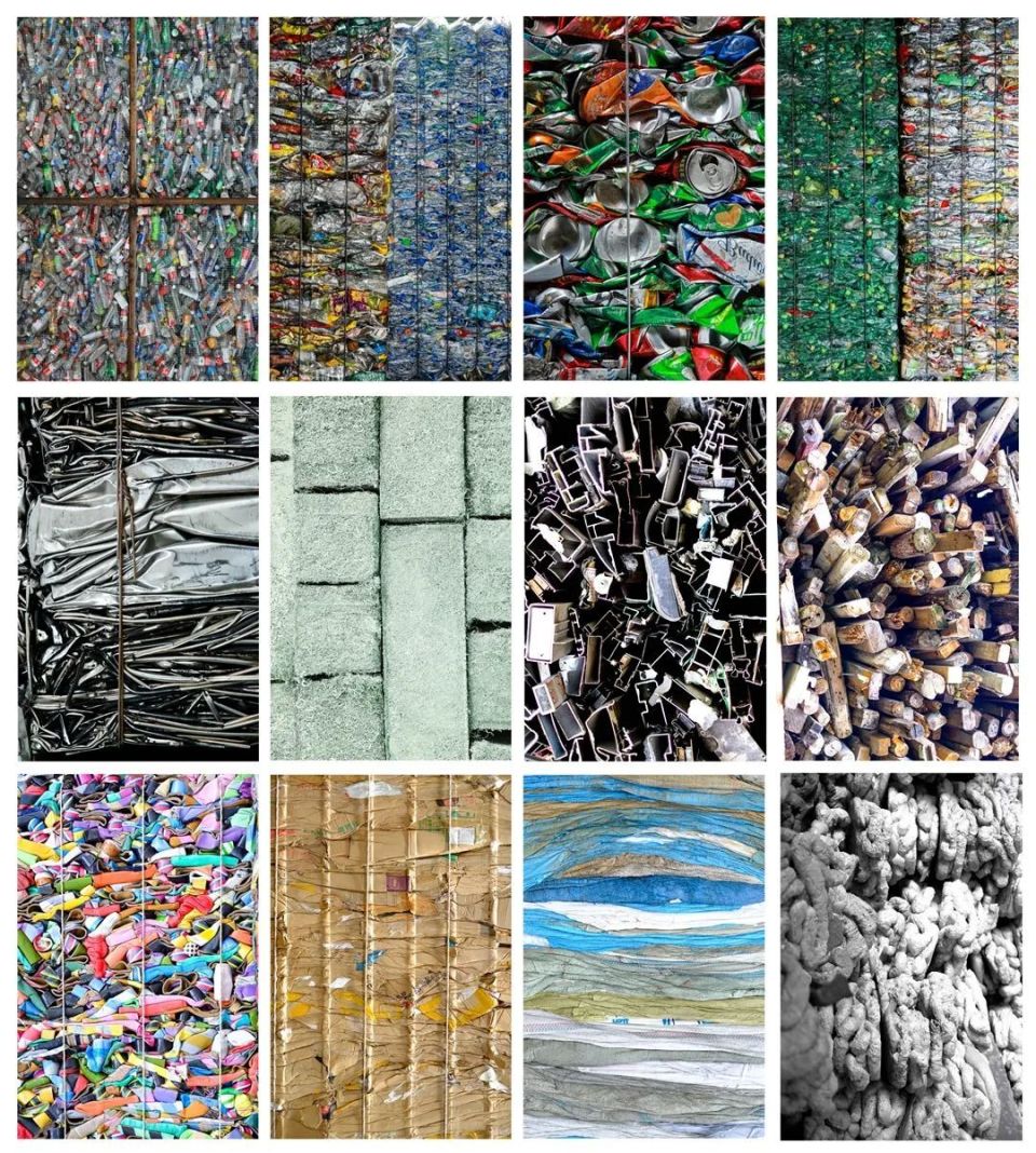 废品变时装后摄影师为废品发声:被回收到垃圾回收站里的纸箱被压缩后被捆绑。