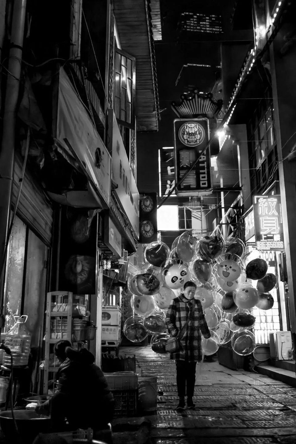▲2024年8月21日22:56 收工回家的卖气球老人。