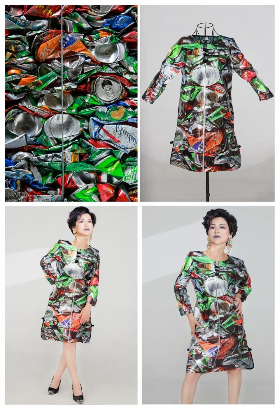 废品变时装后摄影师为废品发声:巨型十字框里没被压缩过的塑料瓶颜色非常美!
