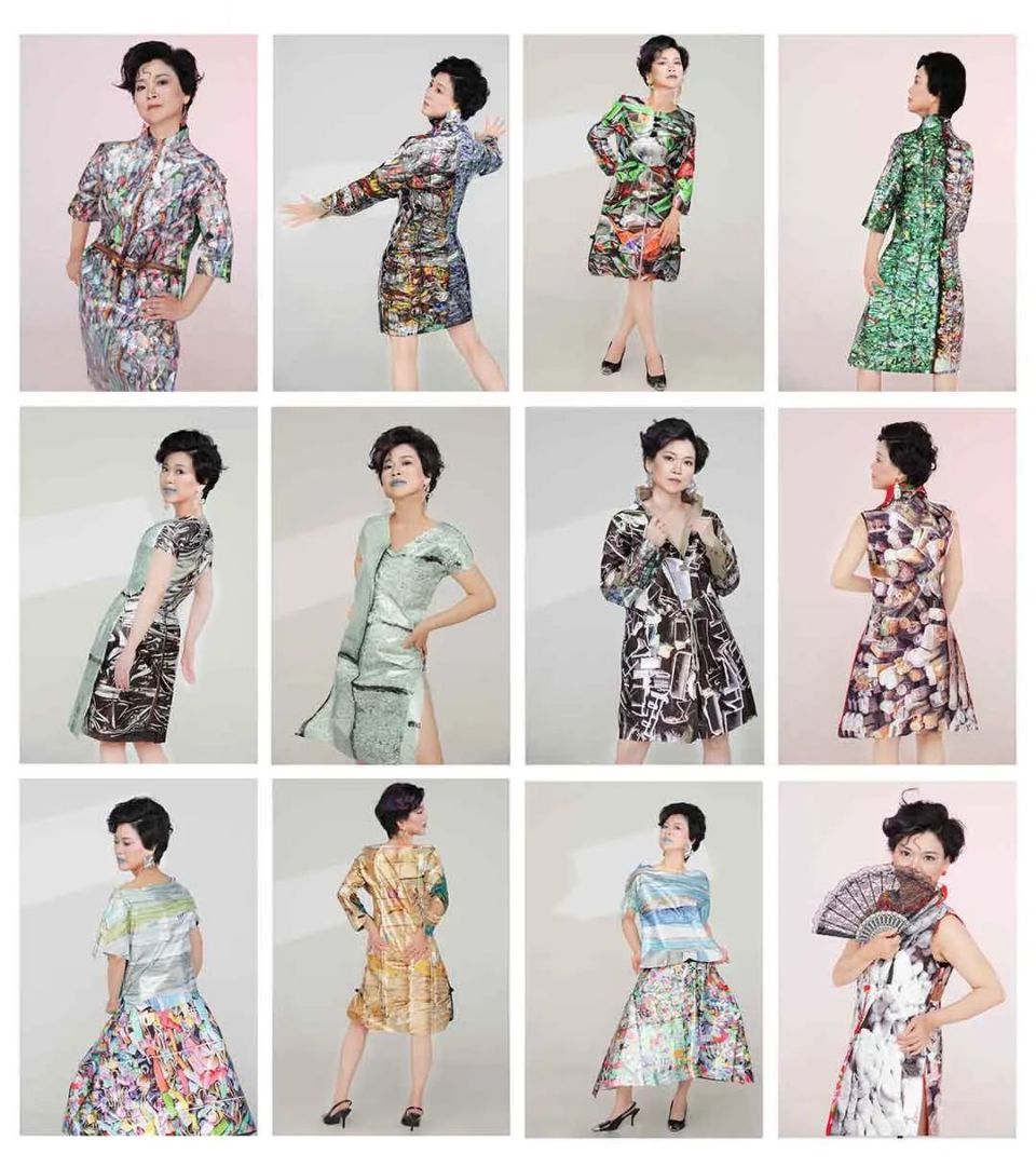 最为引人注目的,莫过于那些由废品制成的“时装”。通过精湛的剪裁与搭配,这些看似杂乱无章的废弃物被转化成了一件件独具匠心的服装。每一件作品都透露出作者对材料的深刻理解和对美的独到见解。摄影师本人穿着这些由自己亲手“制作”的“时装”,自信地站在镜头前,她的笑容与身上的“时装”形成鲜明对比,仿佛在向世界宣告:美,不应以牺牲环境为代价;废物,亦能绽放新的光彩。