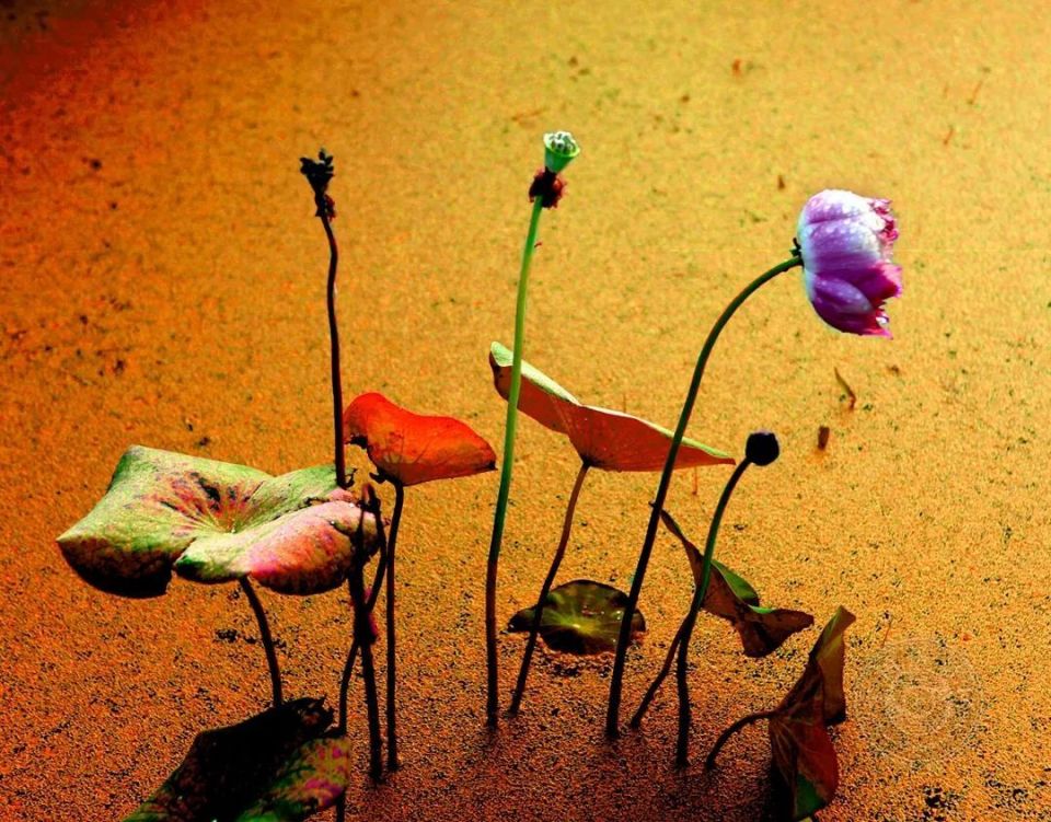 莲荷青黄,凡人朝暮,纵横一生,千古同辙。自年少至年老:意气风发、壮志豪情;红尘奔波、硕果丰盈;斑霜迟暮、傲骨雅清。时光、流年、岁月,从春到夏至秋抵冬,犹如诗韵好似狂曲亦象劲舞酷肖戏幕,一载一轮回,一生一芳影。在一缕缕风烟里,在一处处风景中,在一个个梦乡内,听雨声迎朝阳观晚霞酿美景。此时,亮相在神怡心静明眸晶灿下的枯荷,显得恬静清喜、气质凛然、与时舒卷、意度天成。它和着残缺的美,展寓不屈的韵,揭示生命的魂——苦寒铸风骨,寥落亦风华。