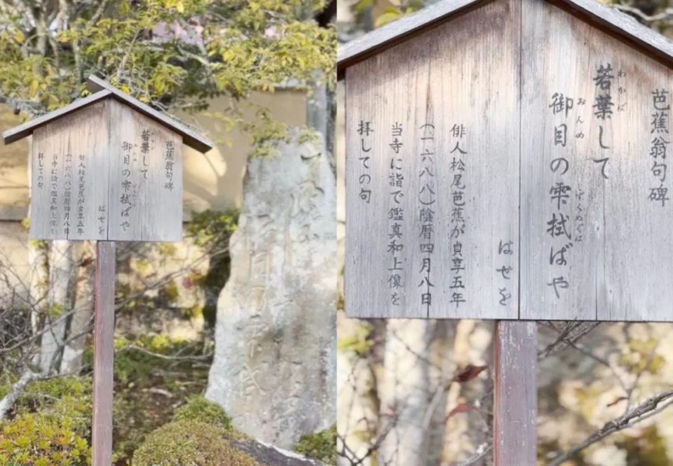 一进寺里,我径直走到了松尾芭蕉的这块石碑和木牌前。好像这个场景,我很熟悉一样,我来过一样。