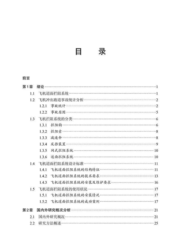 第 1 章主要定义什么是飞机拦阻系统,研究和设计这类系统的意义,它的分类、设计标准、结构特征、安装和维护要求等;