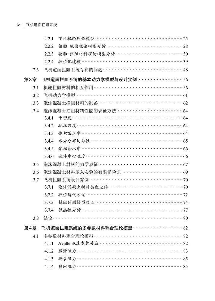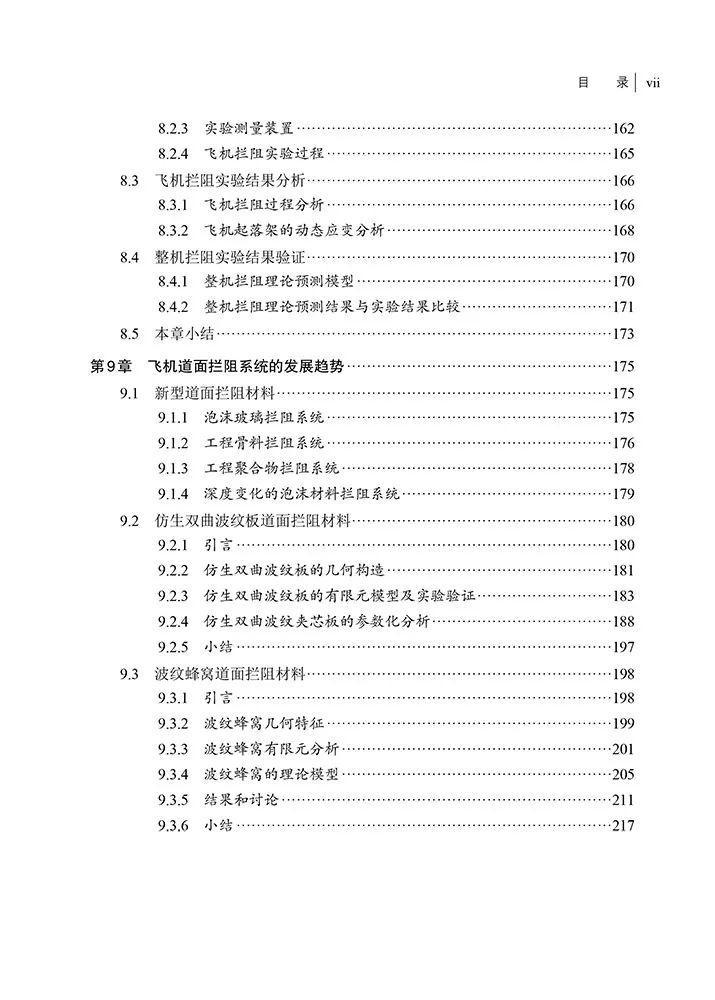 第 9 章主要展望飞机道面拦阻系统的发展趋势,特别是各类新型拦阻材料的应用及相关理论模型与计算方法等。