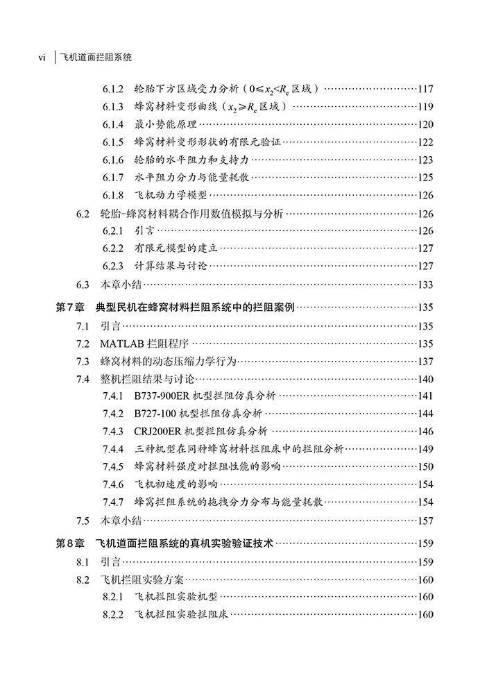 第 8 章主要介绍飞机道面拦阻实验的全过程,包括具体的实验方案、飞机机型选择、拦阻床的铺设、实验测量设备及实验结果与理论模型预测结果的分析比较等;