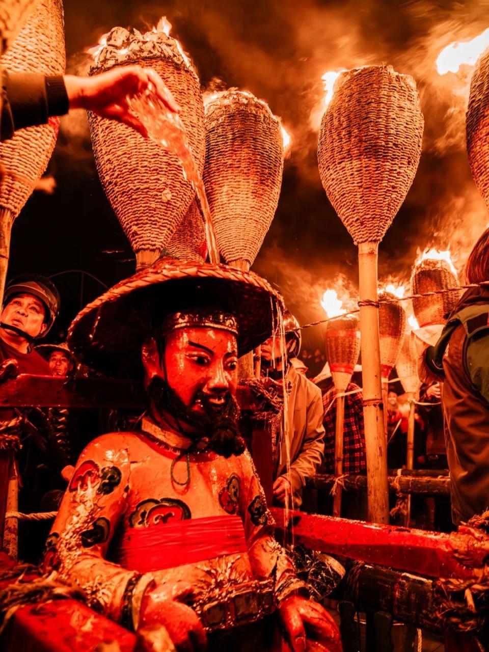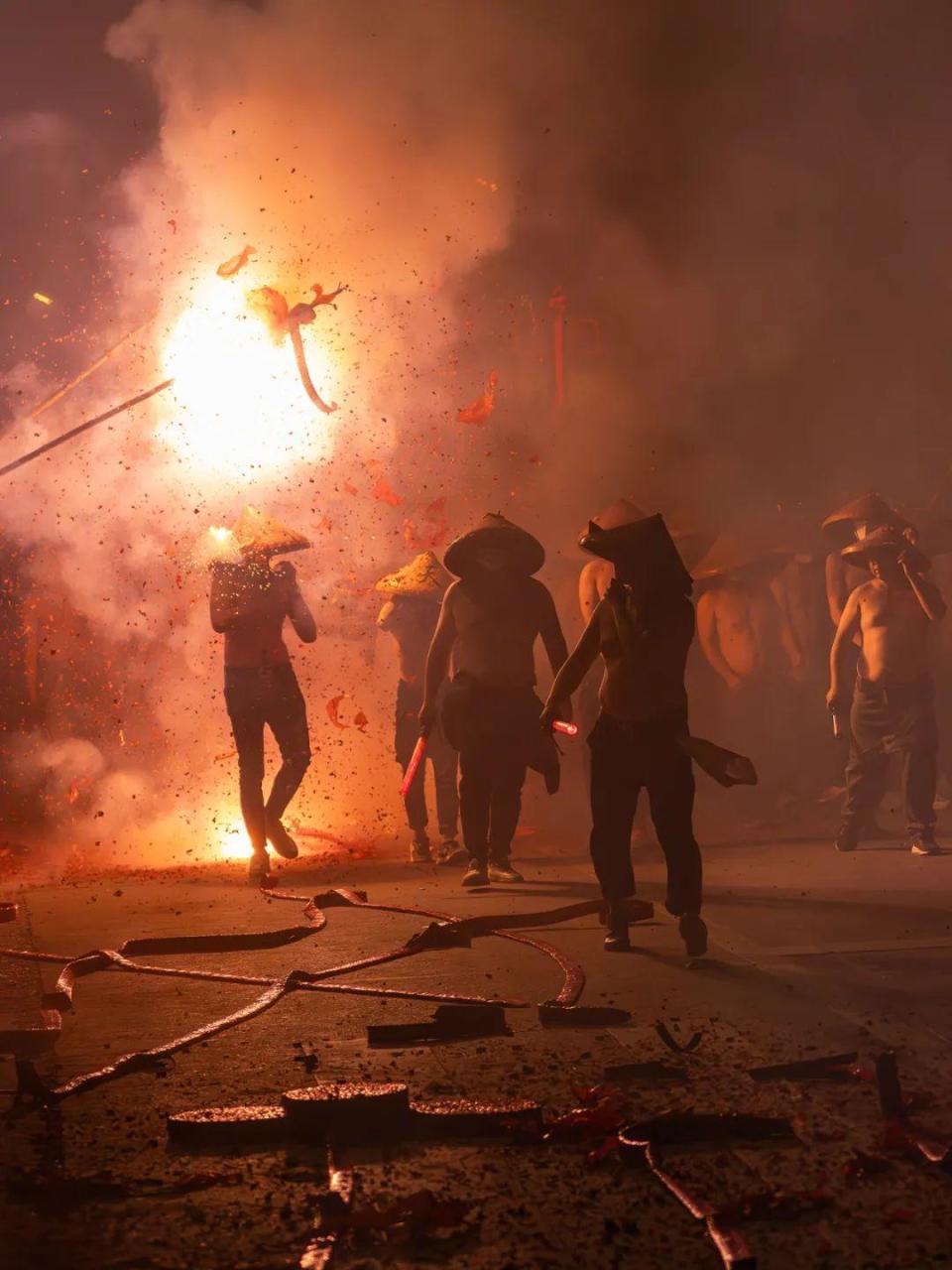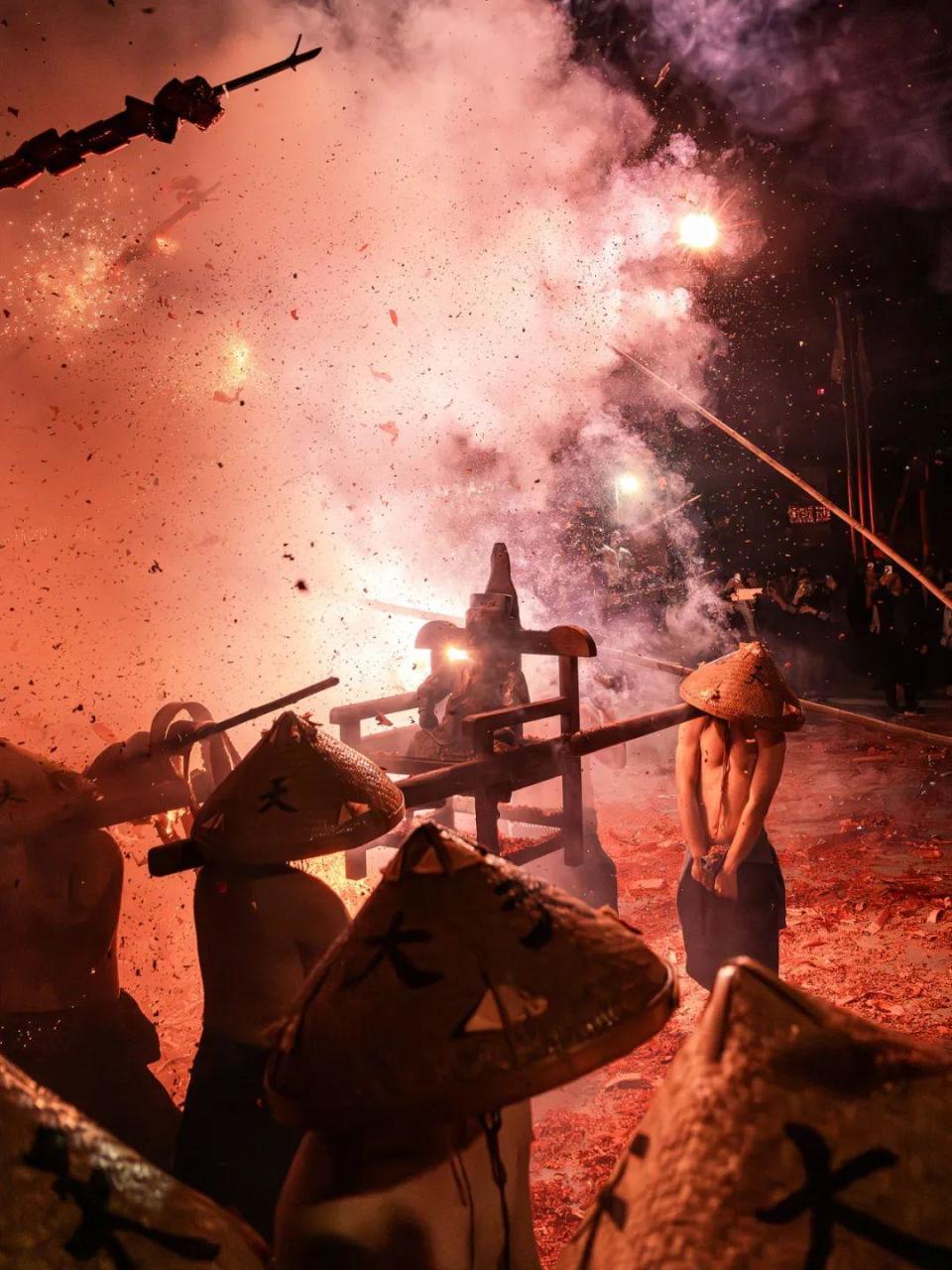 这是福建省泉州市永春县达埔镇特有的民俗活动项目,当地人又叫“逐火把”,号称“闽南第一奇”。所谓炸佛就是将“赵大天君”佛像从本境请出来,绕村巡境,让百姓用点燃的鞭炮放到旁边“炸”,以祈求平安幸福。据了解,这一习俗从明末延续至今,从未间断。前面4天炸佛活动只有一轮,一般晚上6点多开始,10点左右结束;元宵节当晚有两轮,分为巡游和炸佛,一般从下午4点开始,次日凌晨才结束。