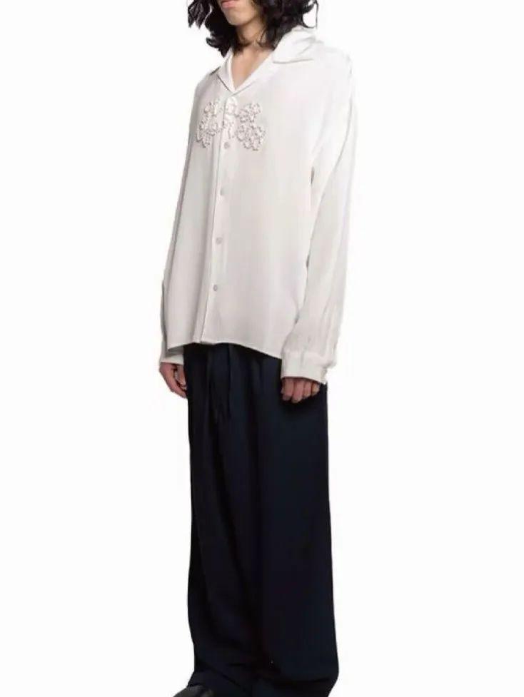 与aespa的Karina柳智敏合作惊喜的双人共舞时,GD则身穿GLASS CYPRESS的白色珍珠钉珠衬衫,突显华丽重工的同时又不失清爽。