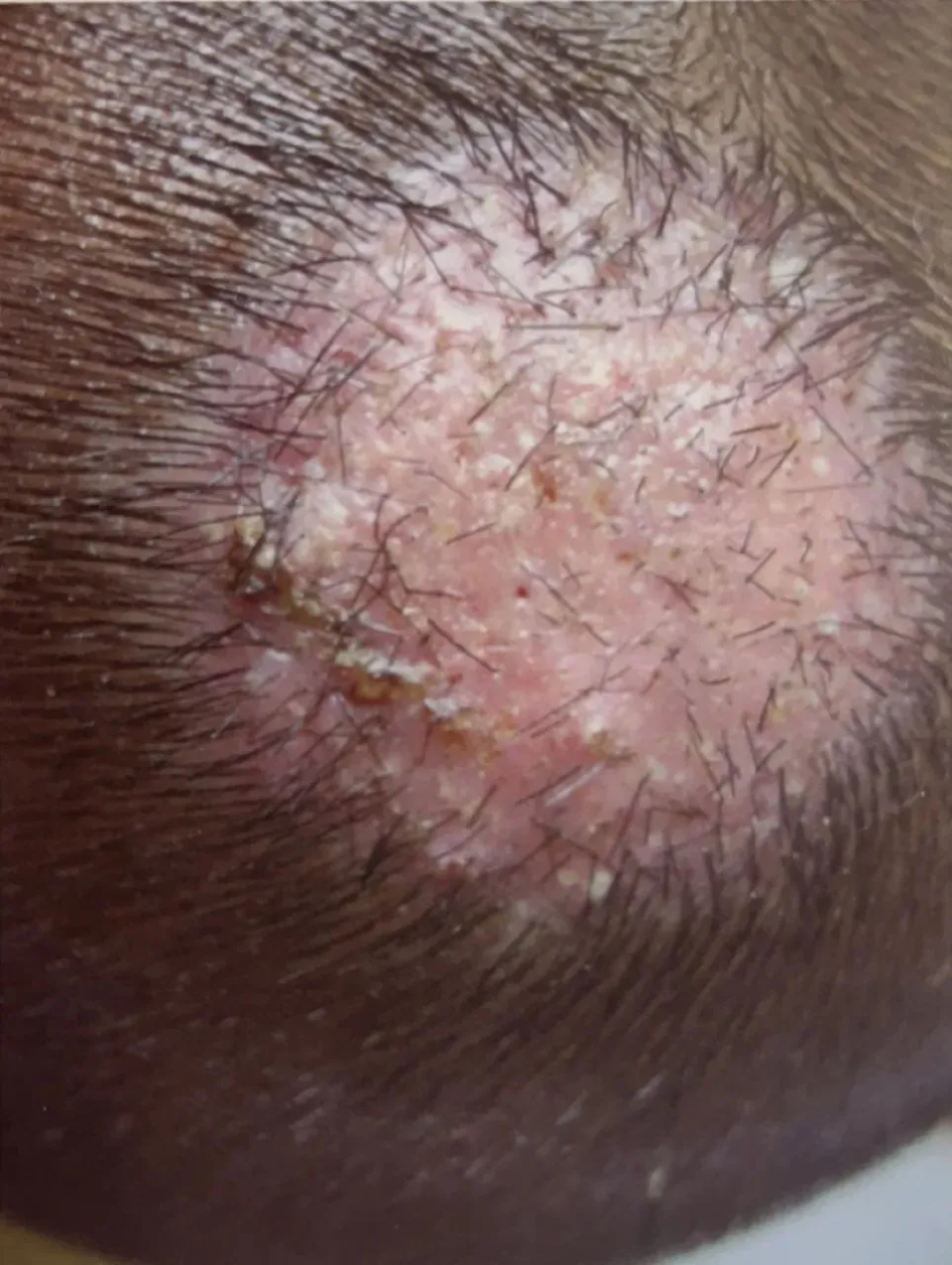 再比如头癣,头皮上的斑秃、毛发异样、脓疮、白屑,会影响美观,患者总不能一直戴着帽子见人。
