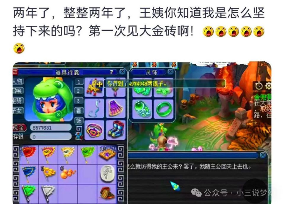 天命副本在梦幻西游中上线应该有两年的时间了吧,在这两年的时间中,有一部玩家在天命副本任务的抽奖,还有现在的通关宝册玩法中获得了大量的物品奖励。上面这位玩家现在就获得了一份大金砖,不过上面这位玩家表示这是自己玩了两年获得的第1块大金砖,那么上面这位玩家的运气怎么样?如果是五开的话,运气不怎么好,如果是单开的话,运气是真的好,因为小编在天命副本上线以后没有获得过任何一块大金砖。