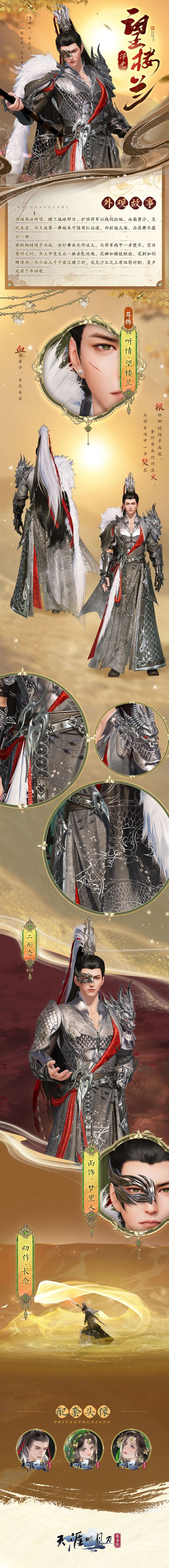 黄沙漫卷,驼铃悠远,沉睡的楼兰在传说中苏醒。全新双形态西域外观【浮光·望楼兰】以楼兰风沙中传颂千年的浪漫传说为灵感,将于10月9日随琉璃秘宝活动来到江湖,为少侠开启一场跨越时空的约定。