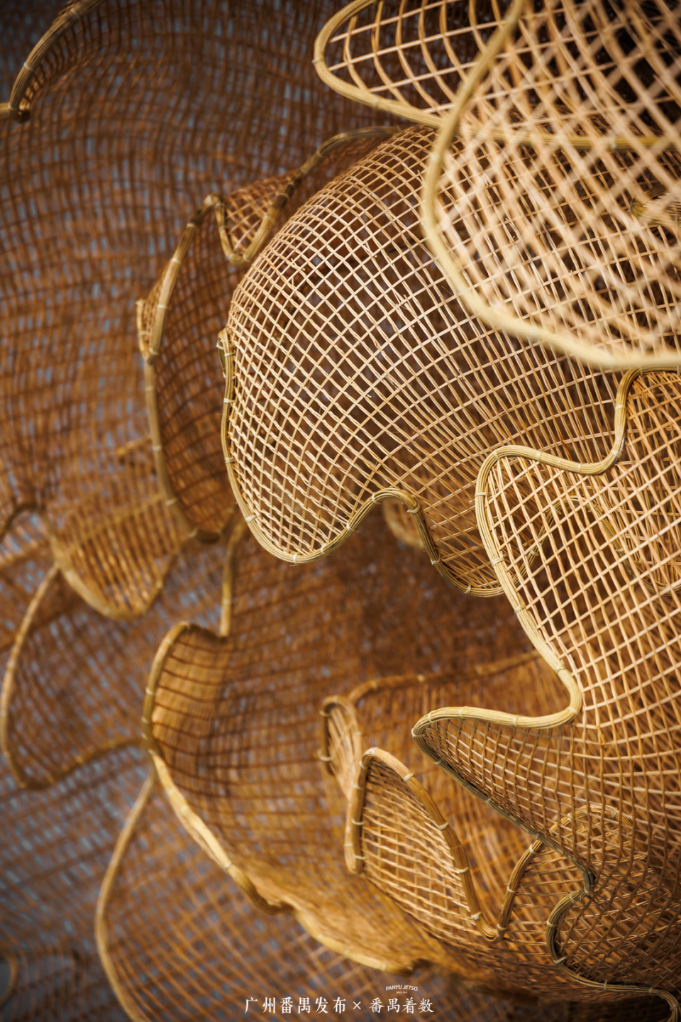 青年艺术家的“非遗竹艺”作品,让人想起沙湾传统竹编——那些精巧的竹编牡丹,恰似在向番禺悠久的园林文化轻轻致意。