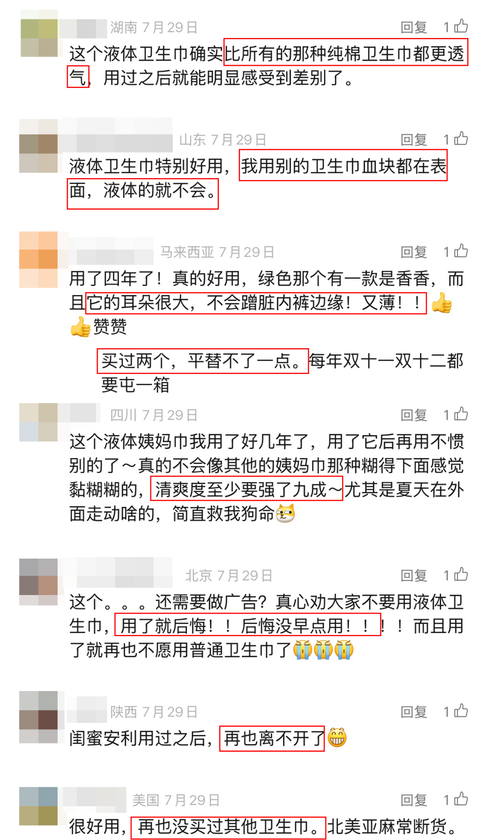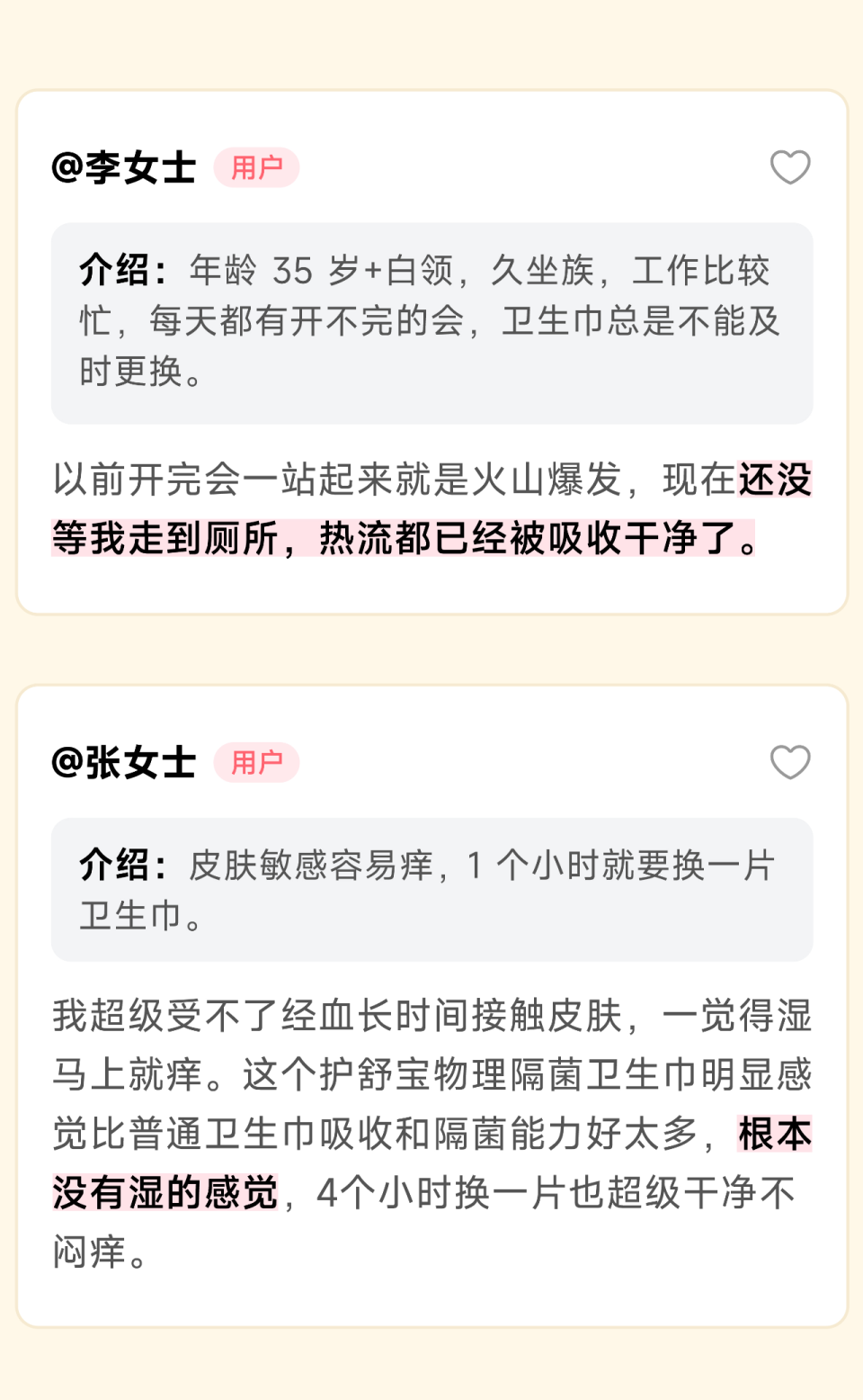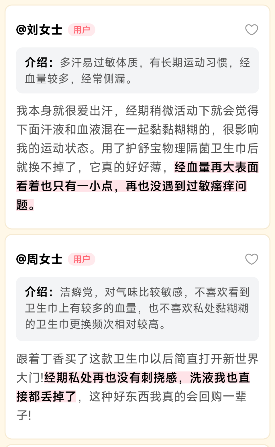 为了让大家更懂护舒宝物理隔菌卫生巾有多好,我们特意对上次下单的一些用户进行了回访,请她们分享自己真实的使用体验👇。