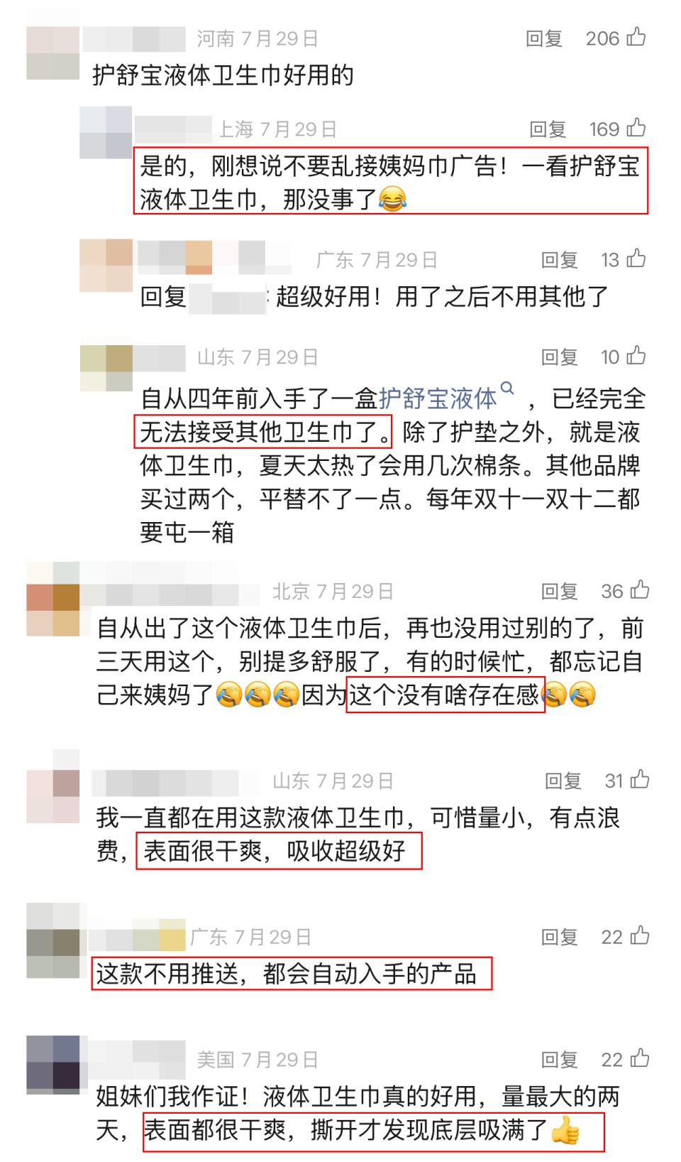 护舒宝新推出的这款物理隔菌卫生巾几个月前才刚上市,目前已在电商平台卫生巾好评榜霸榜数周,社交媒体上也好评无数。
