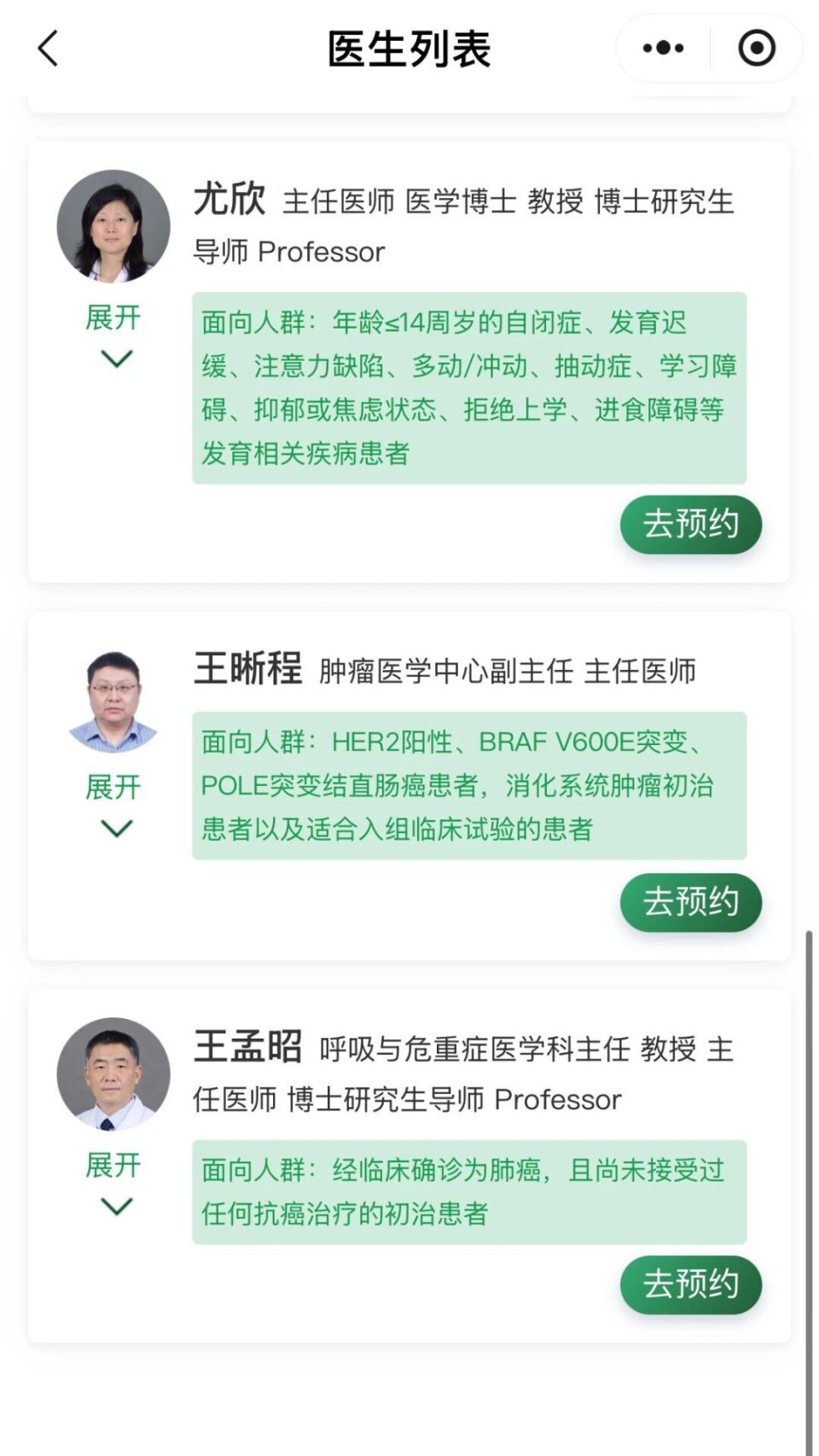 今年初,北京协和医院门诊部在信息中心及临床科室的支持配合下,启动了“精准预约”项目。经过前期专家需求征集、流程设计及多轮测试后,北京协和医院微信小程序的“精准预约”功能成功上线。来自妇产科、呼吸与危重症医学科、消化内科、风湿免疫科、血液内科、肿瘤内科的6位医生已陆续出诊,精准为患者提供“靶向”医疗服务。