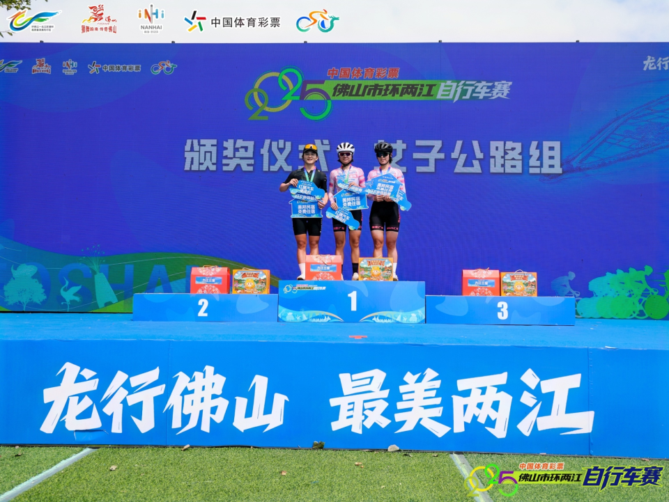 颁牌仪式将现场氛围推向一个小高潮。赛事组委会向中国体育彩票授予“2025佛山市环两江自行车赛冠名单位”牌匾,向广东雄桥建设集团有限公司、佛山海晟金融租赁股份有限公司、佛山市福利彩票发行中心、广东三藤科技有限公司授予赛事“2025佛山市环两江自行车赛赞助单位”牌匾,感谢他们为赛事成功举办所提供的支持。