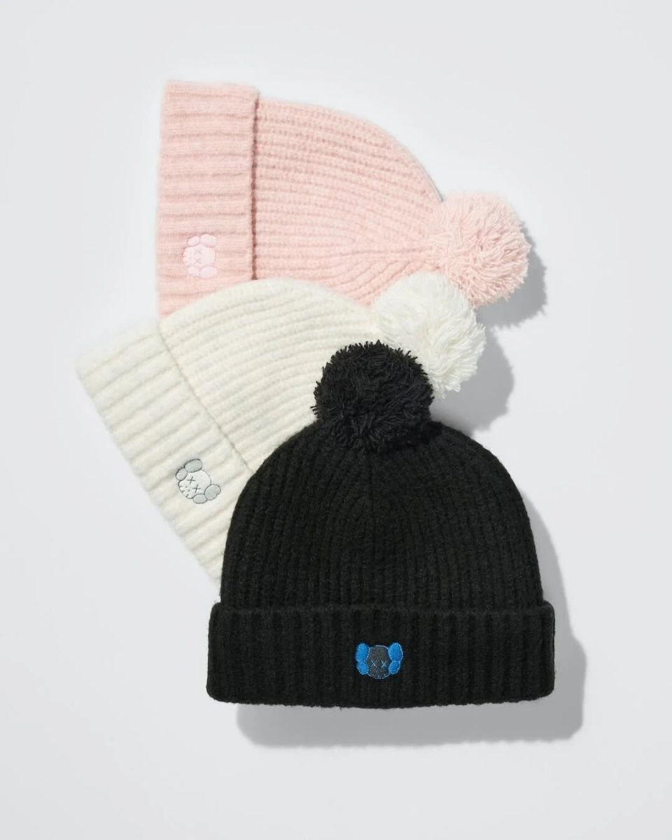 针织帽和手套采用了 HEATTECH 吸湿发热科技,并且也呈现了 KAWS 经典 XX 图案。