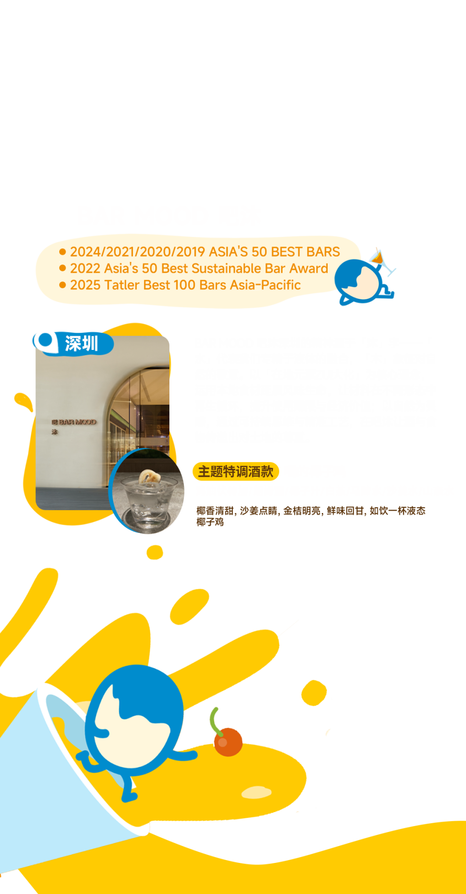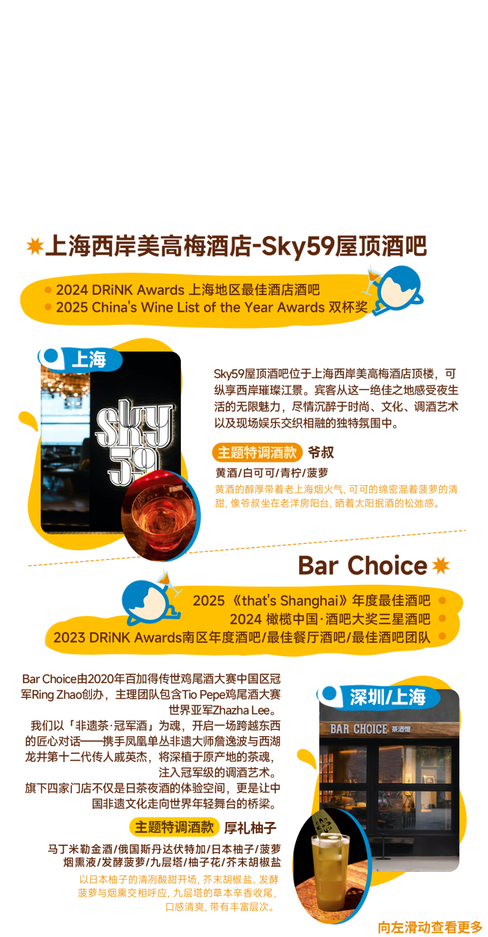 大家可以在家门口品尝到它们为本届鸡尾酒节带来的主题特调,体验风格各异的鸡尾酒创意。