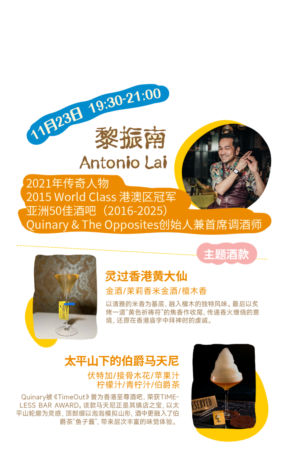 多家在行业内广受认可的酒吧主理人也将亲临现场,以满满诚意为大家酝酿新的鸡尾酒故事。