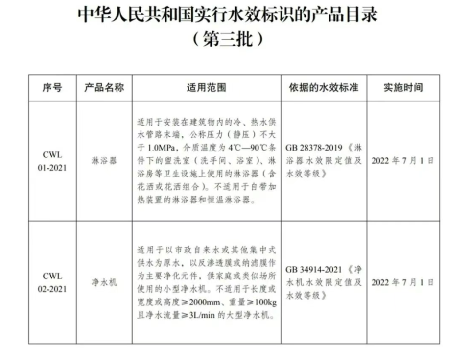 水效标识已覆盖六大类生活产品