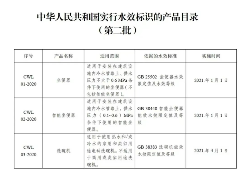 我国已发布四批水效标识产品目录