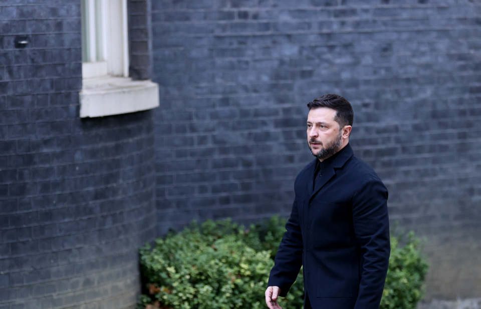 10月24日,在英国伦敦,乌克兰总统泽连斯基走向唐宁街10号首相府。