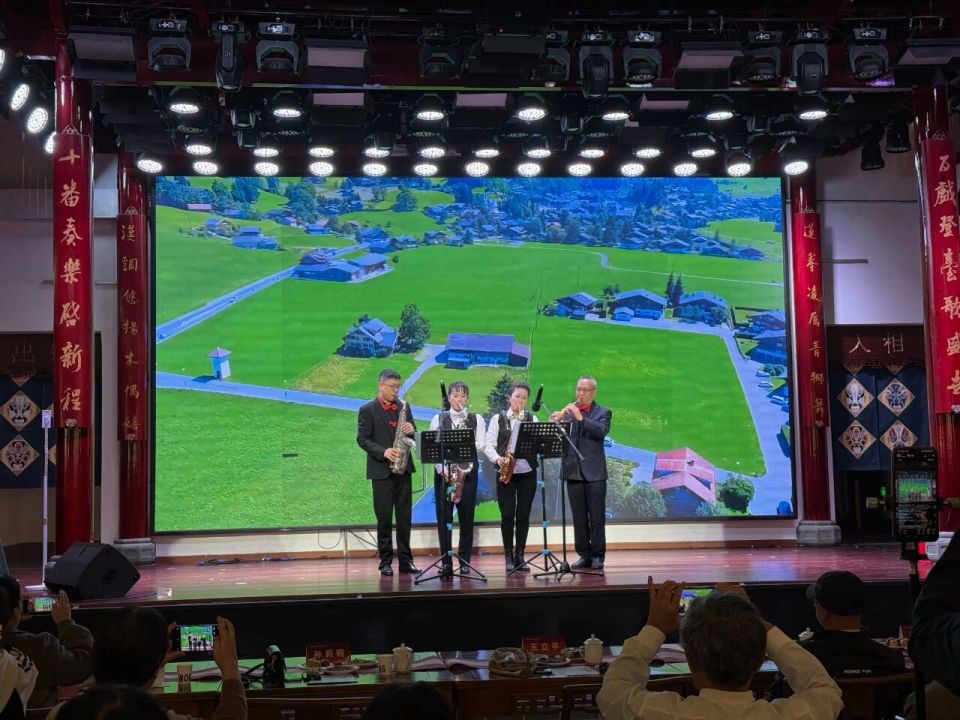 11月22日晚,“株莲璧合”·梨园Sax风正盛活动在连城县四角井历史文化街区梨园温情上演。活动现场,乐声与非遗相映,氛围感拉满。萨克斯独奏《喋喋不休》《随心所欲》节奏明快,二重奏《月亮代表我的心》治愈人心、《樱桃树下》韵味悠扬,来自湖南株洲的萨克斯演奏者们带来的一曲曲经典旋律,深深打动每一位观众。此外,十番音乐音律和谐、木偶书法灵动精妙、连城武术表演刚劲有力,当地非遗节目轮番登场与萨克斯碰撞出别样的火花。不仅为市民游客带来一场沉浸式的艺术熏陶,更丰富了夜间文化生活,让大家在光影和声色中感受传统与现代融合的独特魅力。