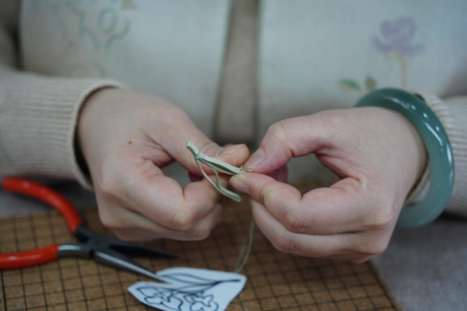 对她而言,技艺与热爱缺一不可。沉浸于盘扣的世界,时间总是悄然流逝,常常一抬头,窗外已然夜色深沉。“那份专注带来的宁静,我想正是手工盘扣最动人的魅力,也是我深陷其中的缘由。”