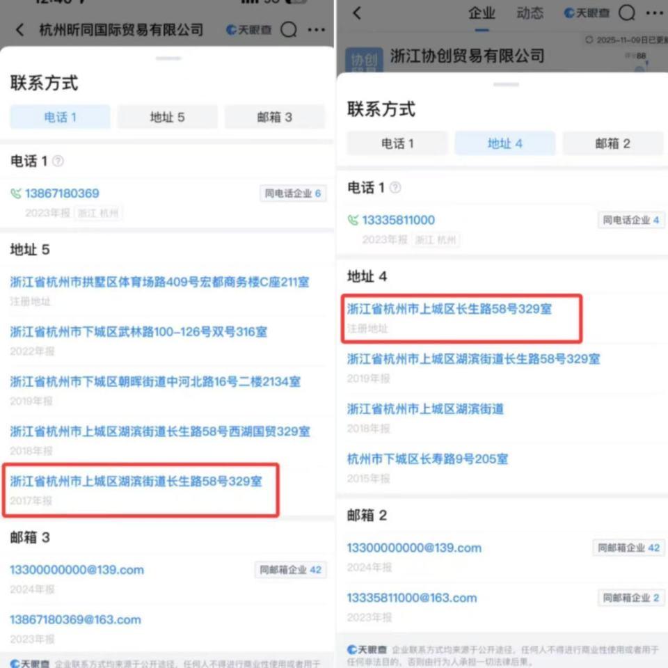 杭州昕同、浙江协创注册地址 图片来源:天眼查截图
